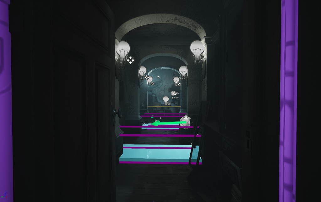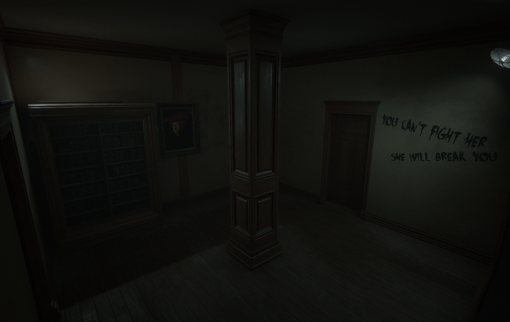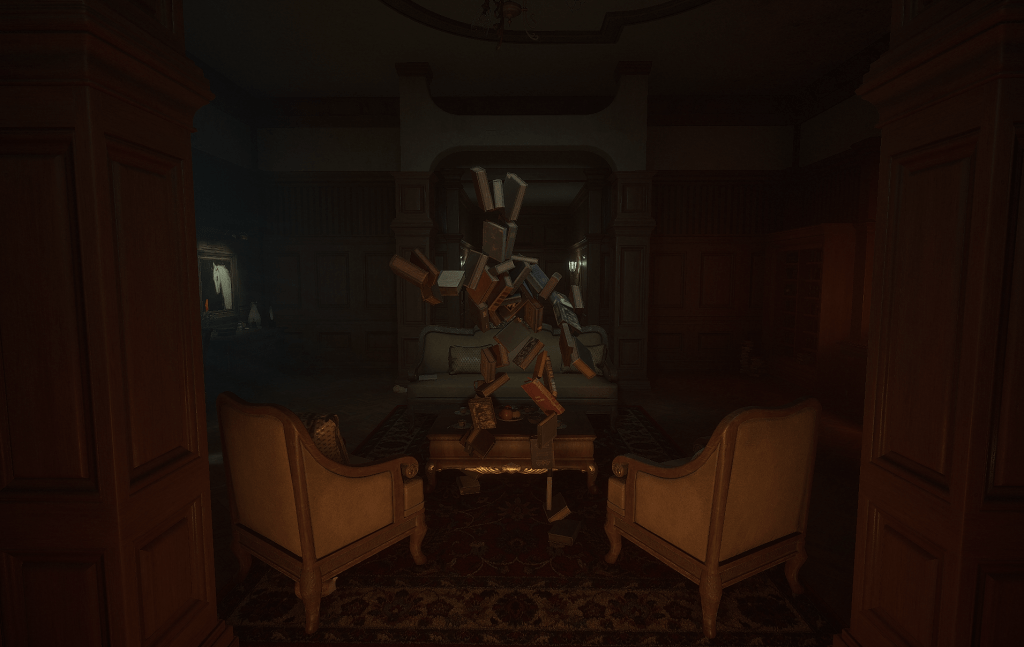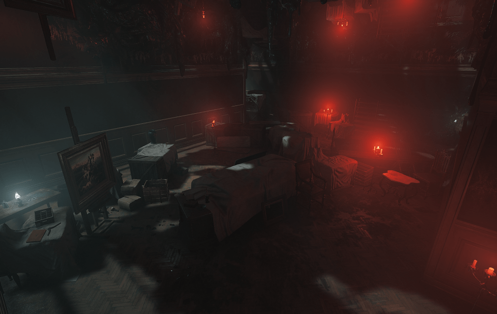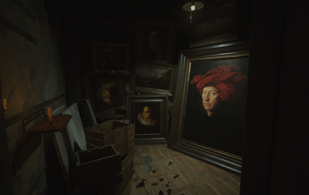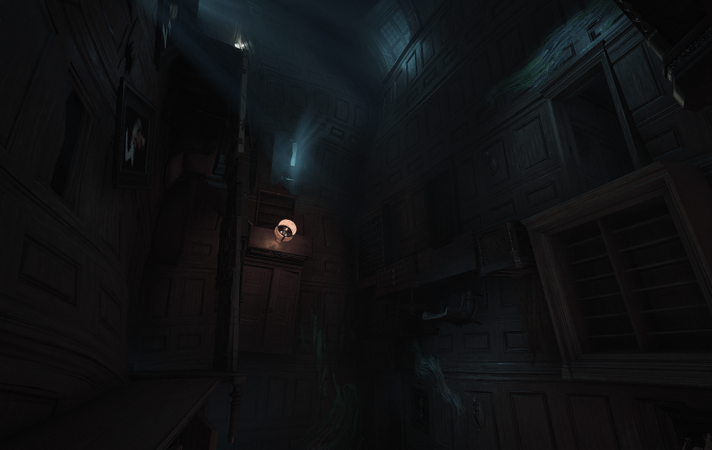 The original sequence was too long, and the encounter with the wife as an enemy felt unsatisfying – players chose either to approach her or retreat back to the room (escape her). We reworked the encounter’s format: the sequence begins similarly – paintings start shaking, fall off the structure, and we see rats running toward the exit. Those rats are fleeing from the Wife, triggering a short combat where the player must escape, destroying Light Sensitive Objects along the way to clear a path. At the end, the player has to squeeze between shelves to evade the Wife, which ends the combat sequence.