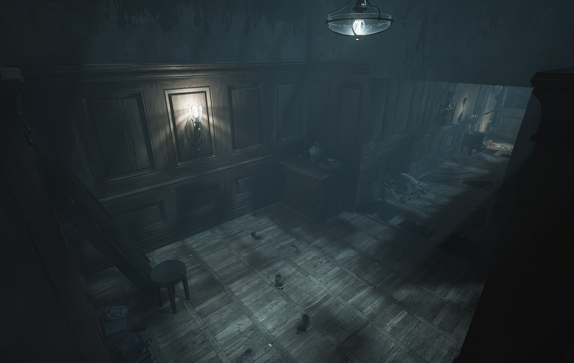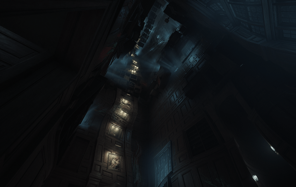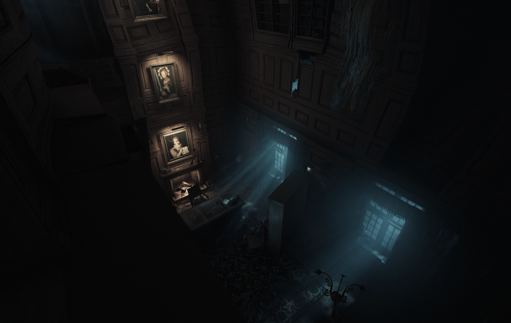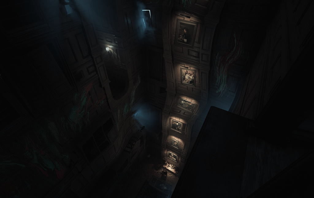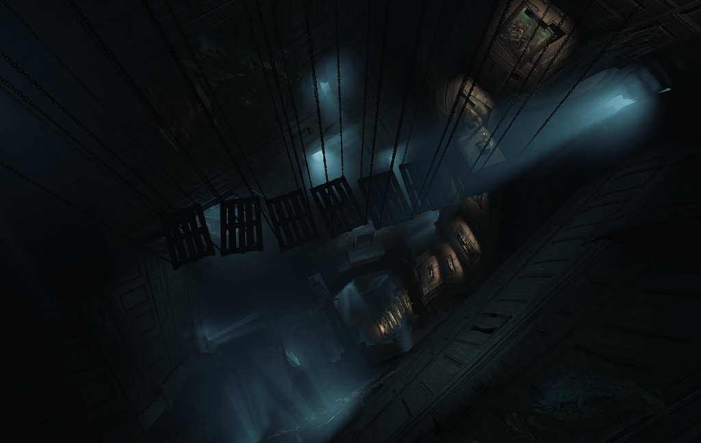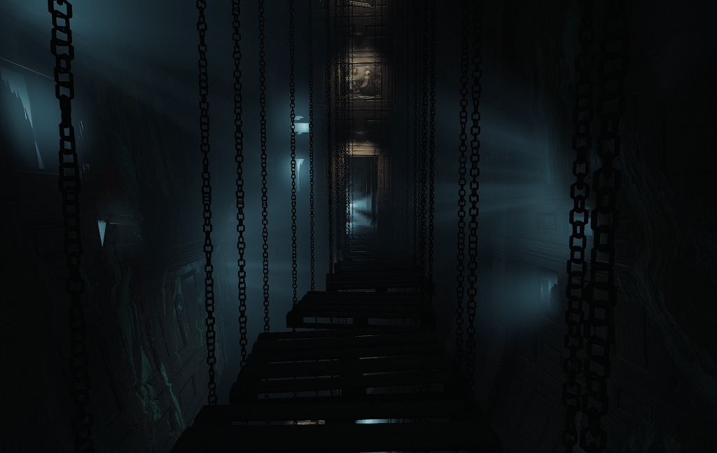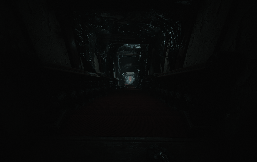 We simplified the final sequence into a kind of memory lane – players descend while VO (voice-over) reflects the choices made throughout the game. They revisit key rooms from previous chapters in reverse order, from the end back to the beginning. The downward movement is symbolic, suggesting the protagonist’s complete descent into madness.