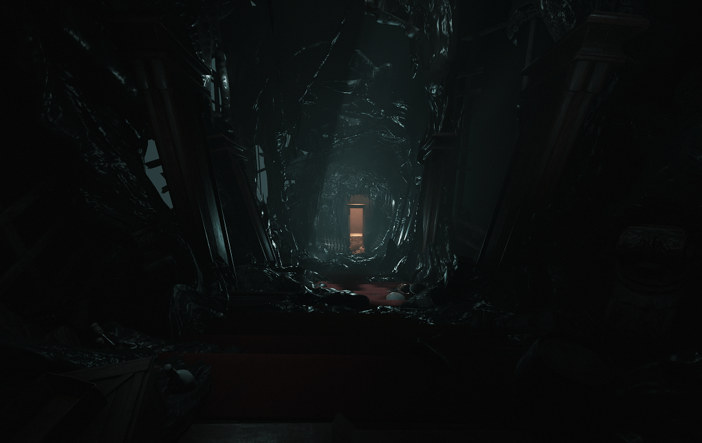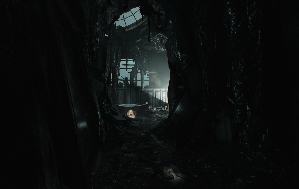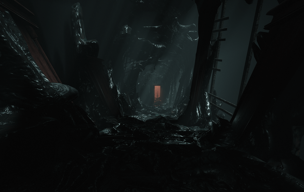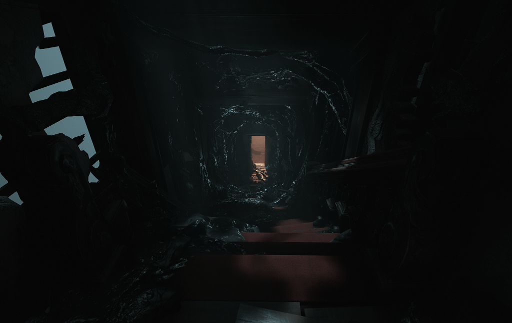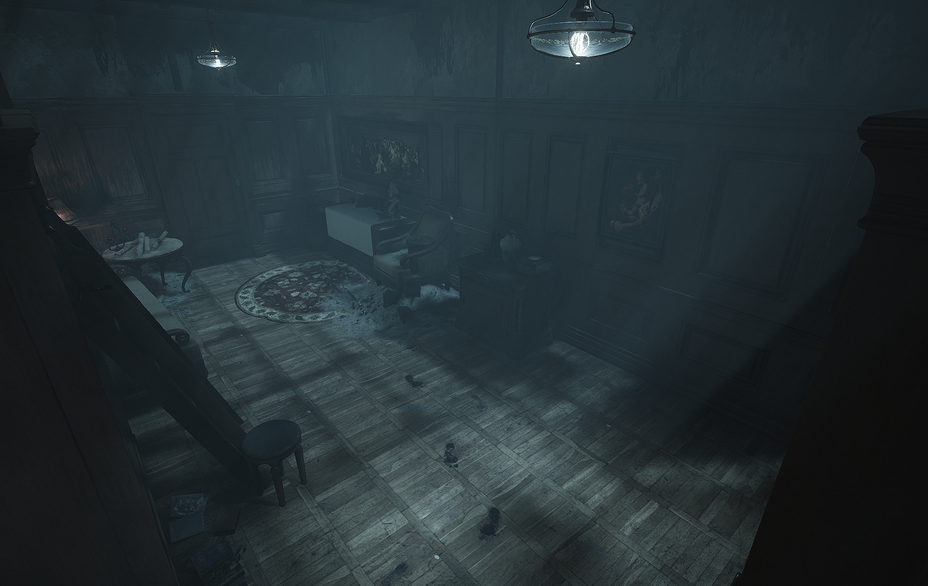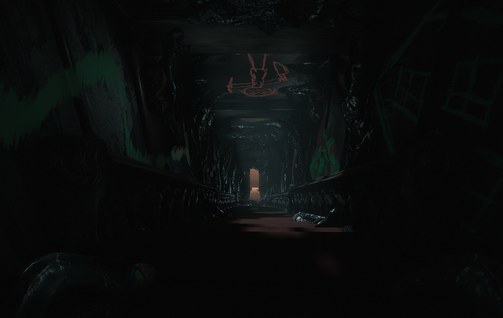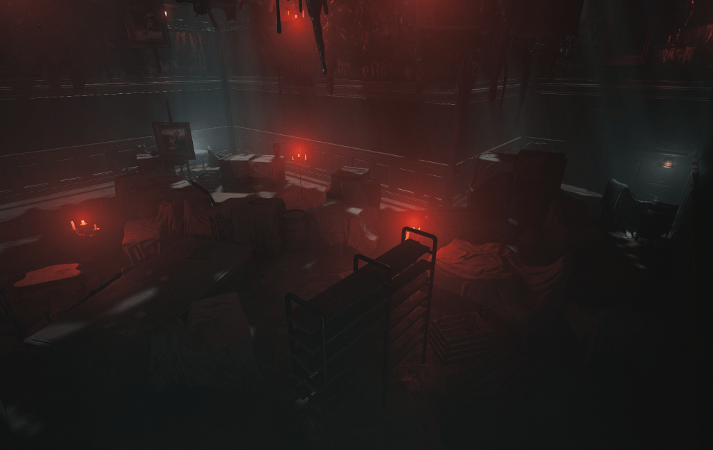 We simplified the final sequence into a kind of memory lane – players descend while VO (voice-over) reflects the choices made throughout the game. They revisit key rooms from previous chapters in reverse order, from the end back to the beginning. The downward movement is symbolic, suggesting the protagonist’s complete descent into madness.