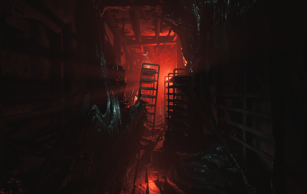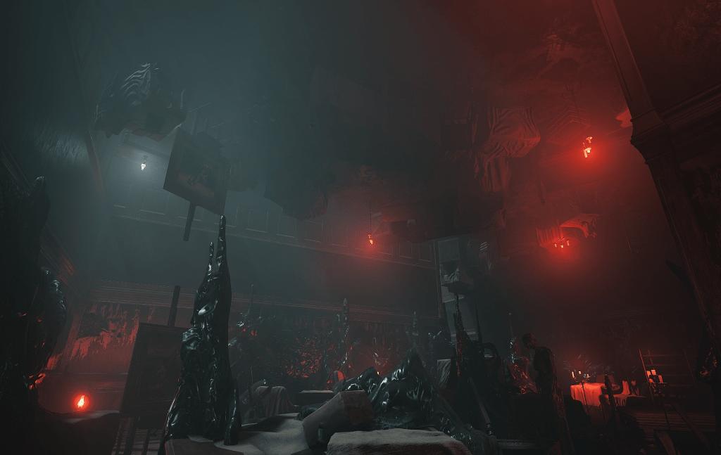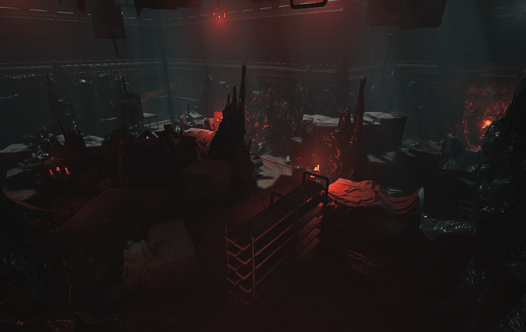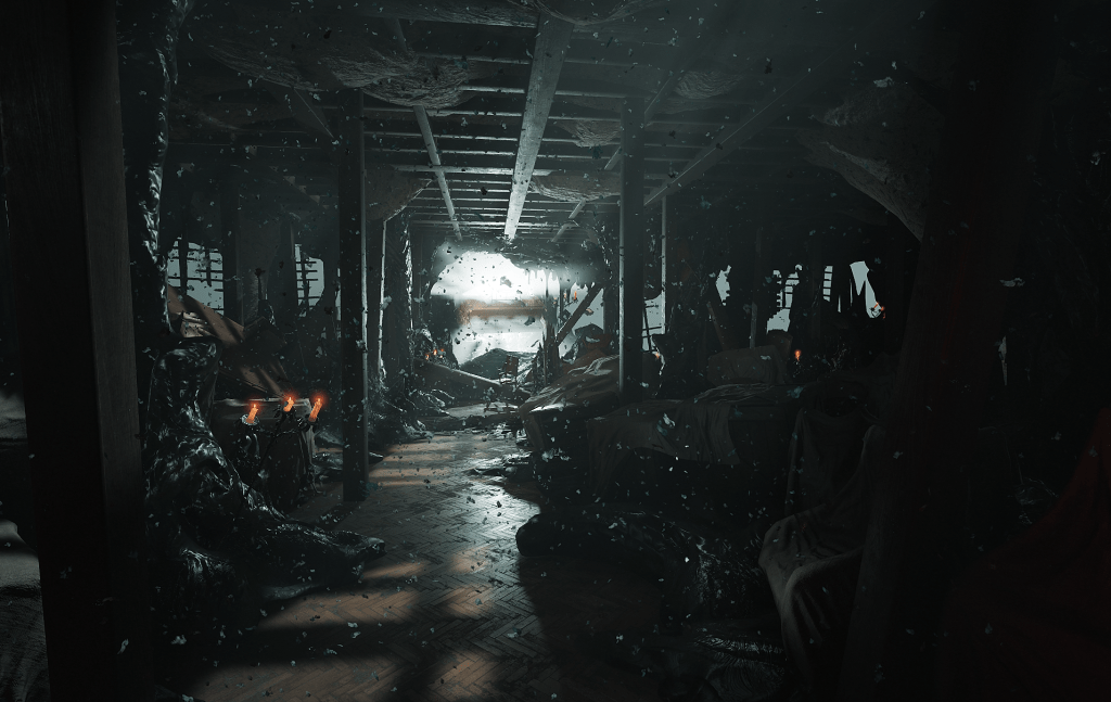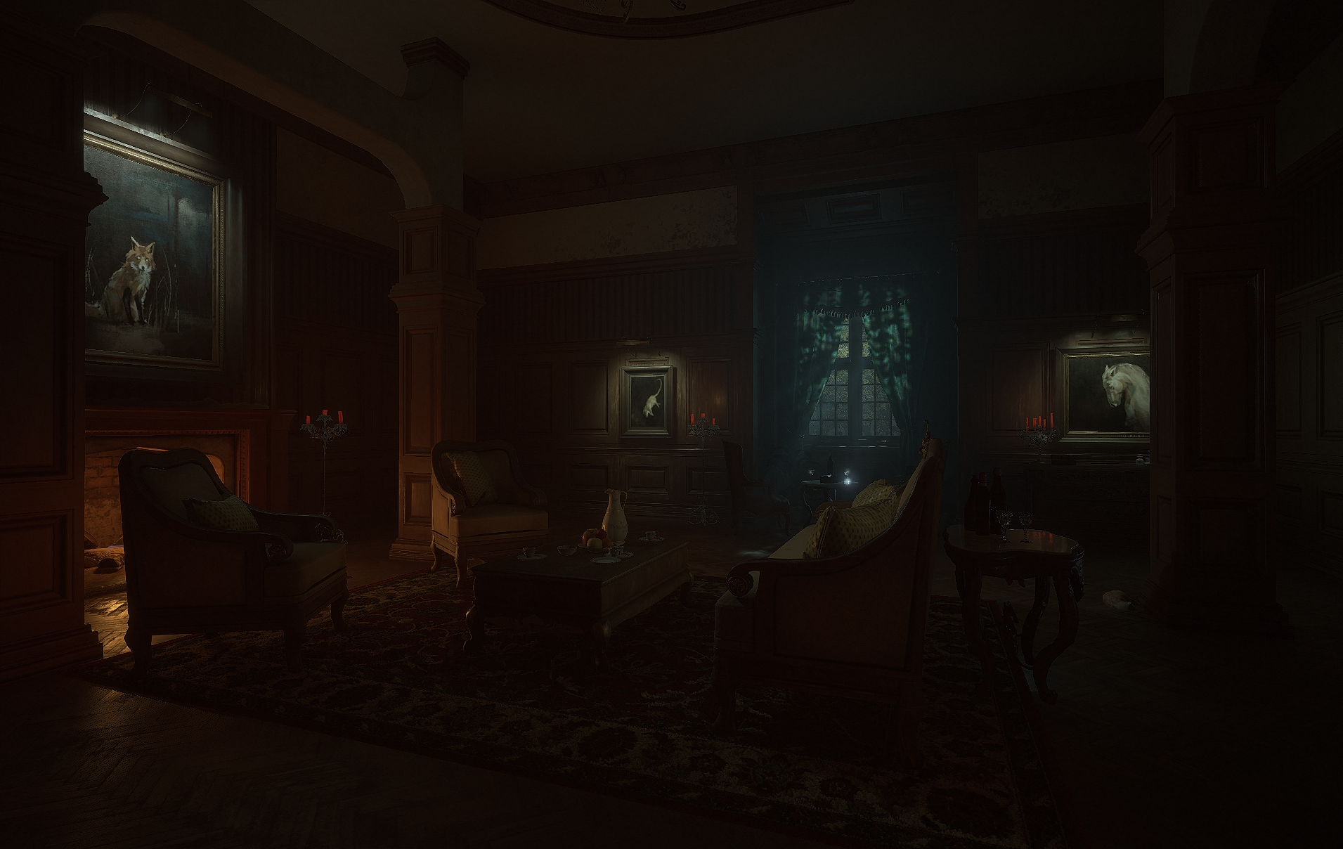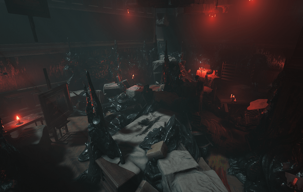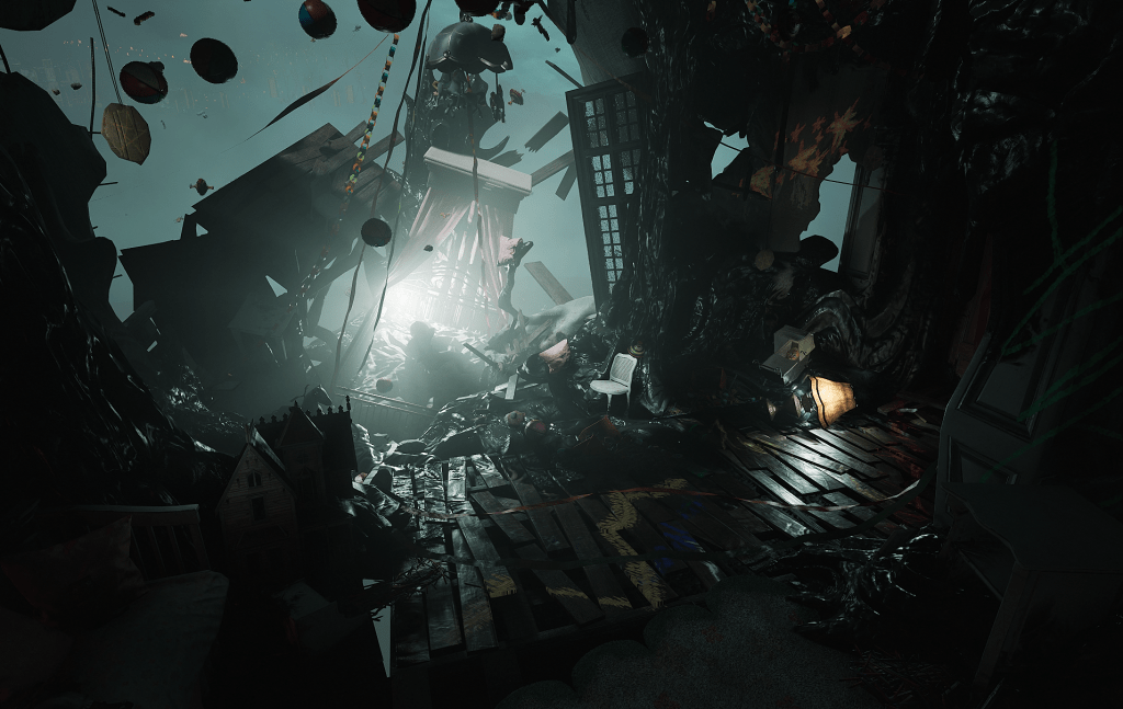 We simplified the final sequence into a kind of memory lane – players descend while VO (voice-over) reflects the choices made throughout the game. They revisit key rooms from previous chapters in reverse order, from the end back to the beginning. The downward movement is symbolic, suggesting the protagonist’s complete descent into madness.