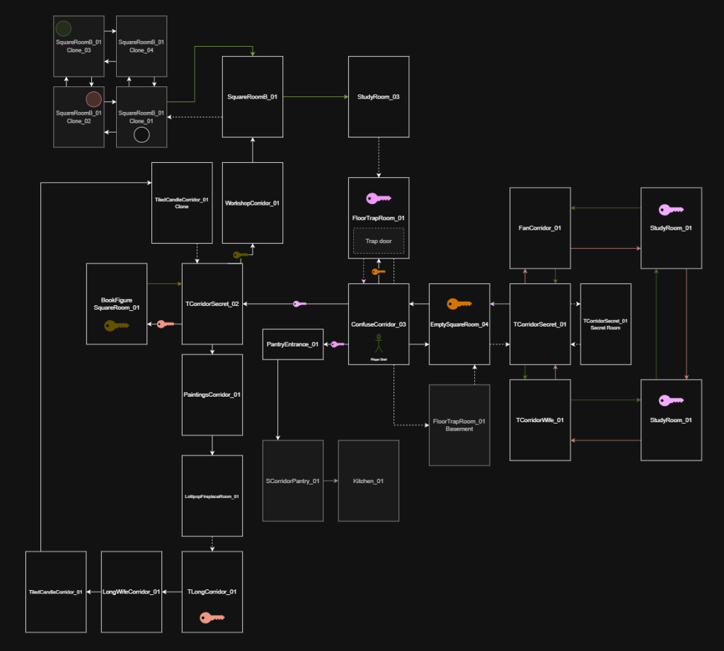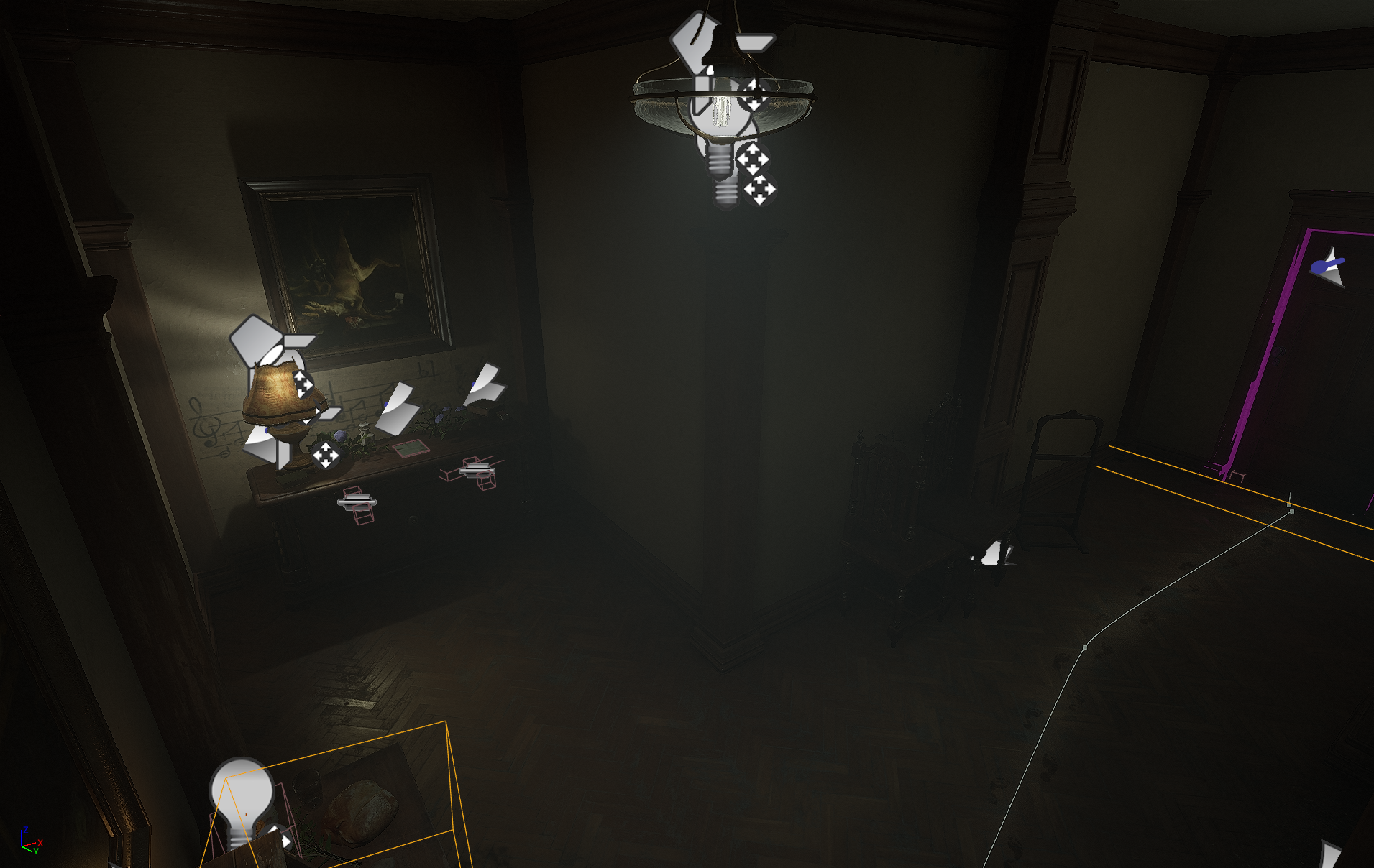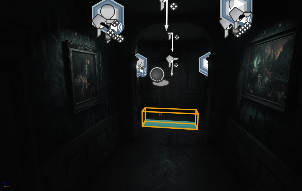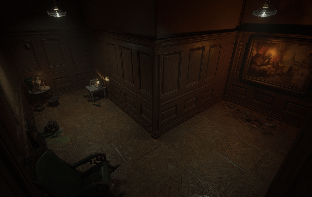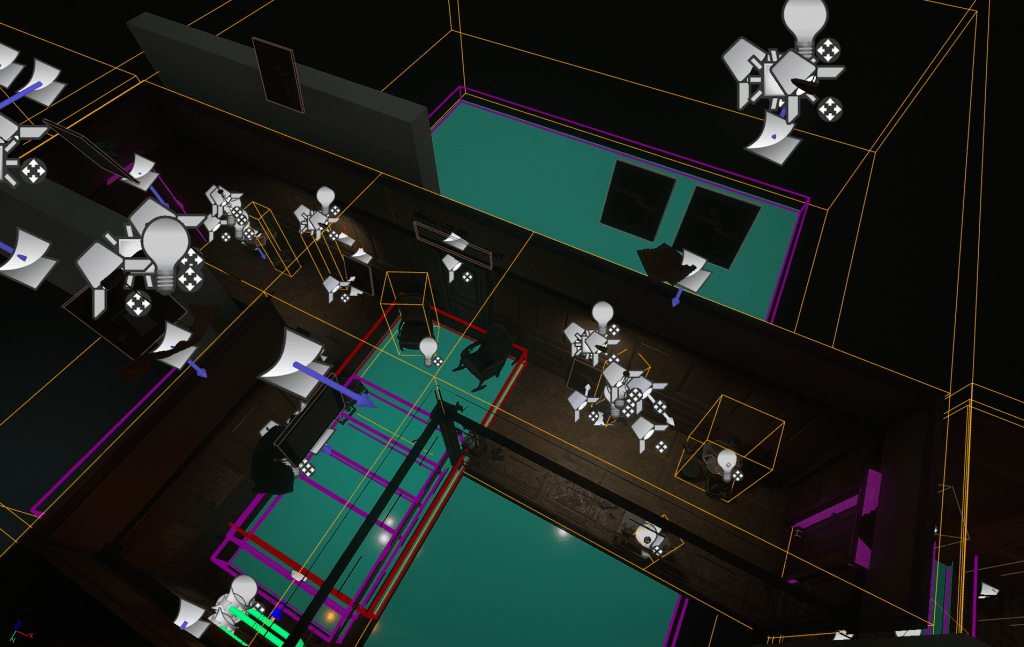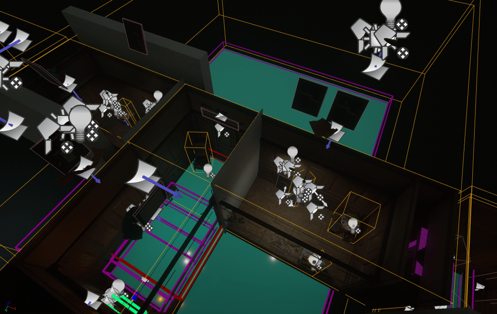 One of my first tasks on Layers of Fear was preparing the Chapter 5 baseline — establishing a new level flow based on reused rooms arranged in a new way, preparing the technical setup for streaming, and an initial setup of events and puzzles (click‑based events).