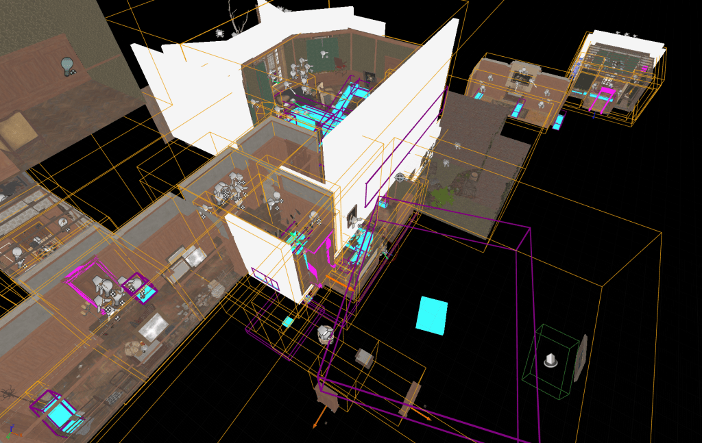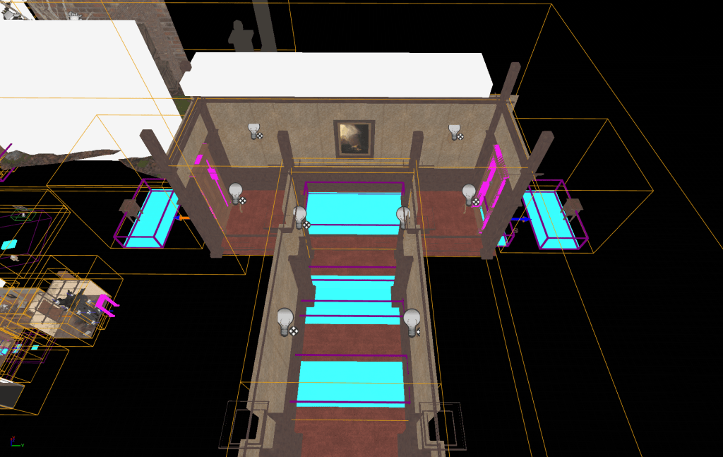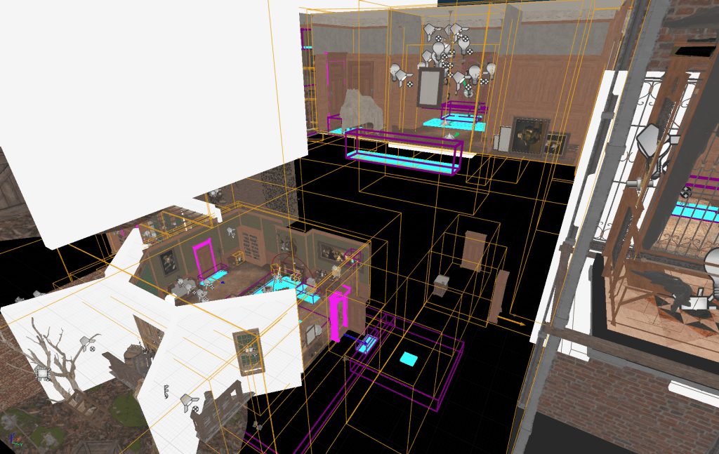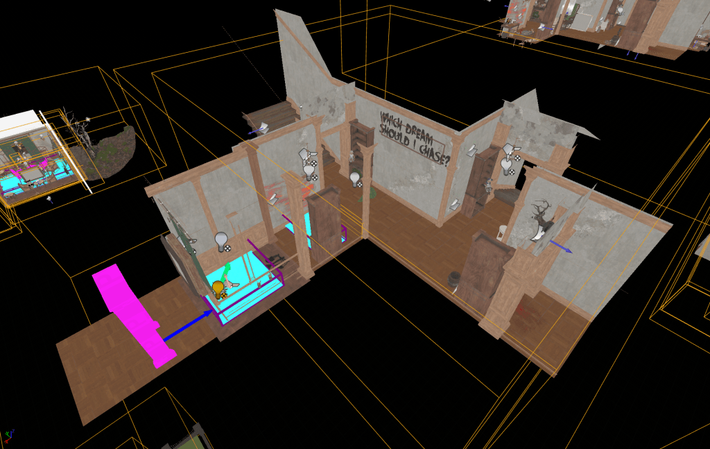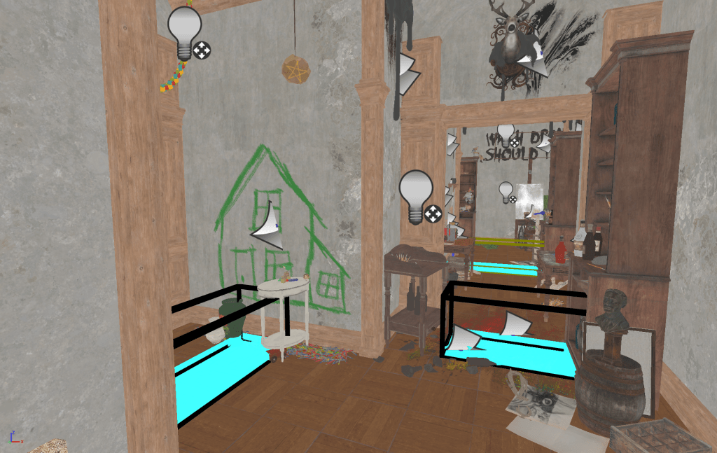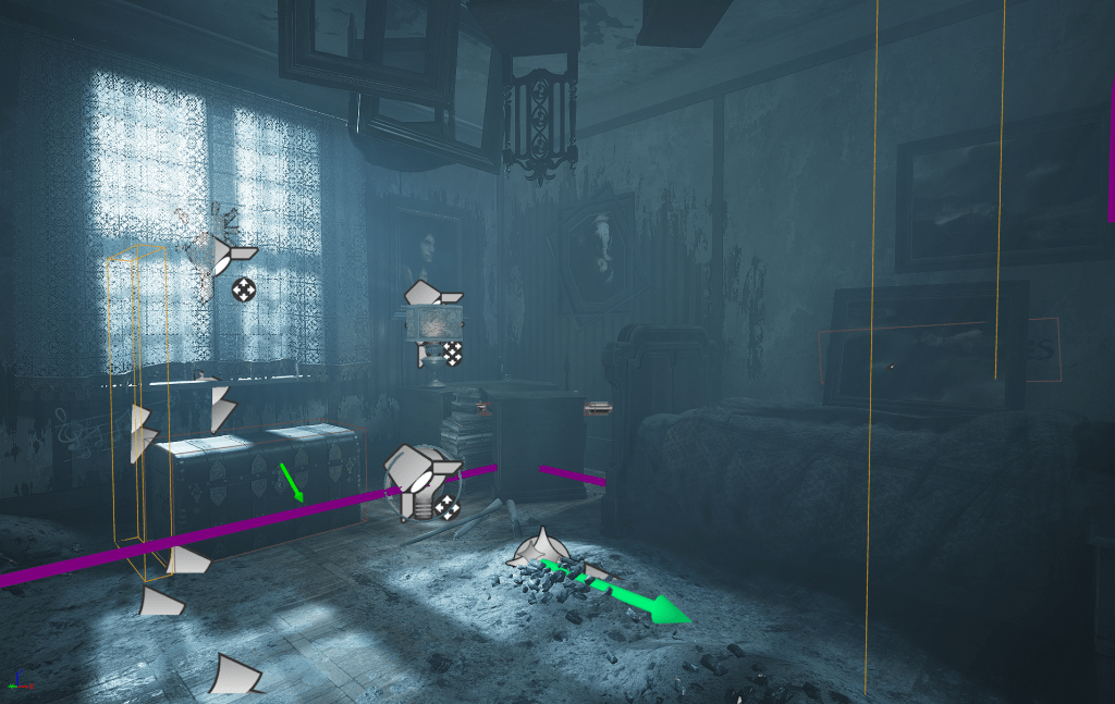 One of my first tasks on Layers of Fear was preparing the Chapter 5 baseline — establishing a new level flow based on reused rooms arranged in a new way, preparing the technical setup for streaming, and an initial setup of events and puzzles (click‑based events).