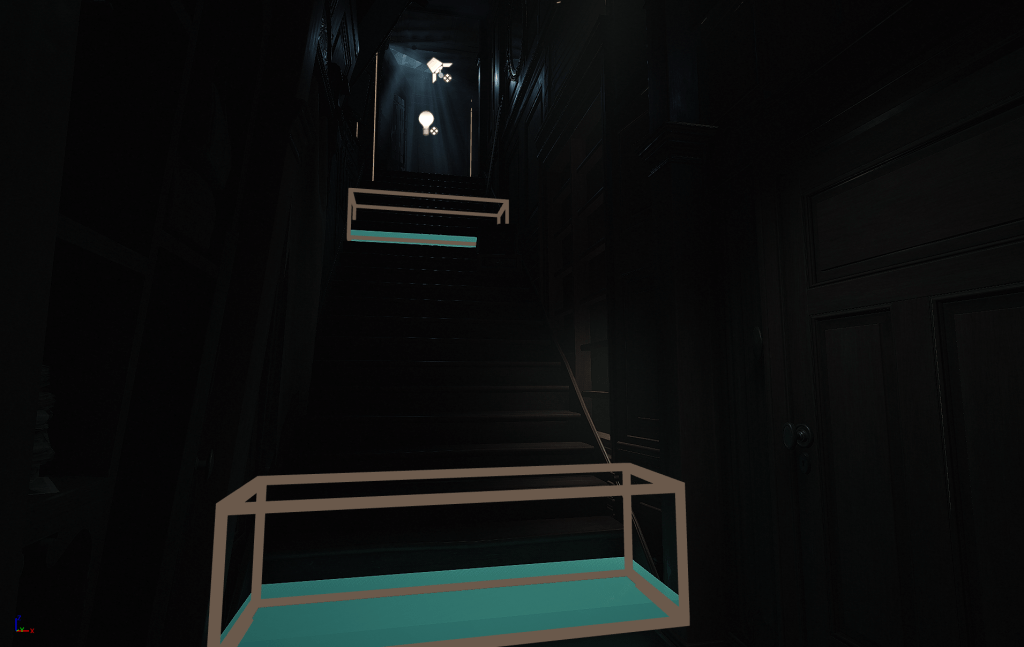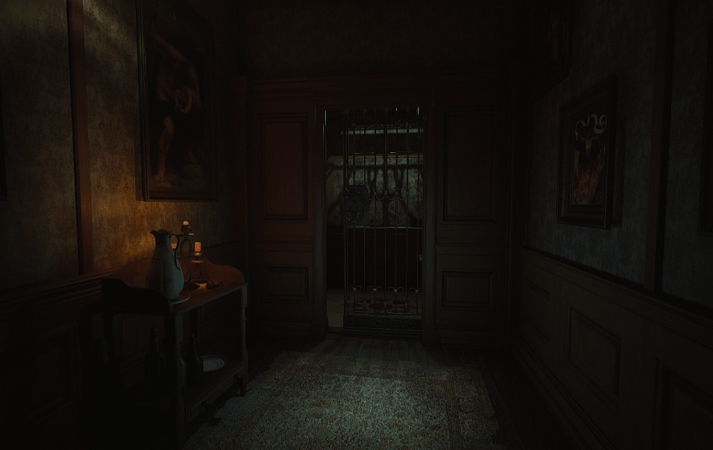 This sequence comes from the original, but it’s worth noting because we built an interesting loop here. Additionally, to increase interactivity, we added a basement segment where a path is unlocked by interacting with a wooden plank, with environment shifts synced to the camera work. After leaving the basement, players enter an empty room with a narrative beat. One door is locked; the other leads to a puzzle room.