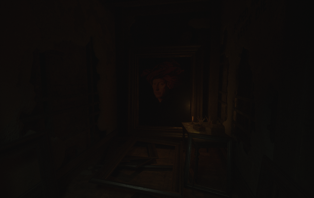 Another looped corridor featuring a player choice. Here, players pick a side marked by child/family-related artifacts or by Painter artifacts. The chosen direction is reinforced by the appearance of an increasing number of artifacts tied to that path.
