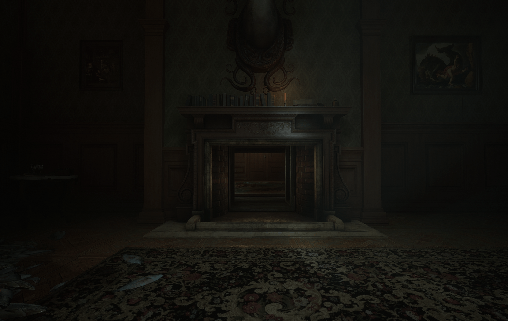 Here’s the aforementioned loop in the deer-head room. Interacting with the light switch reveals a fireplace that can be used—players go through the fireplace and end up in the room where they fell at the very beginning of the chapter.