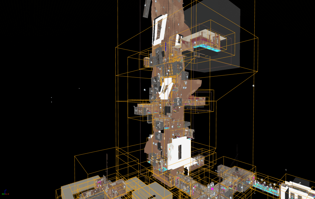 We added an initial entry floor: you find yourself just above the office, then move onto an external staircase where you’re teleported several segments higher.