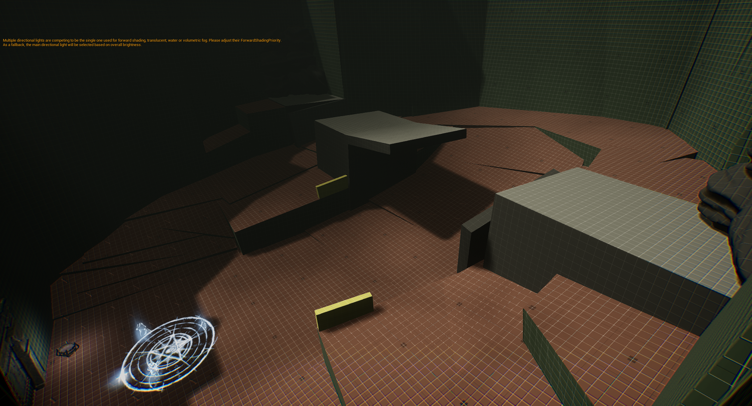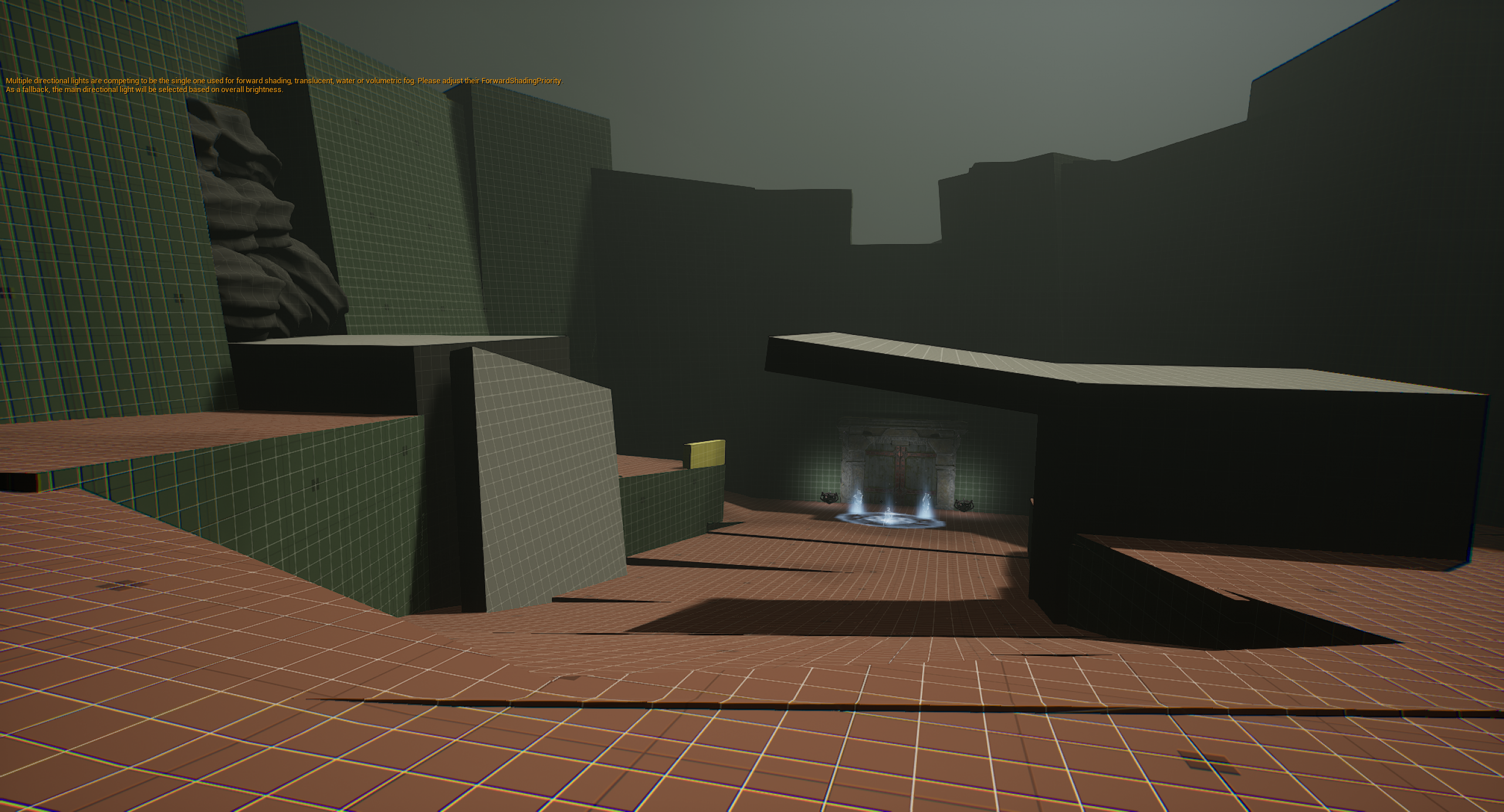 - Landing Space – the area where players start; this space was supposed to allow use of movement so players could play around before they head into action and open the door to the level