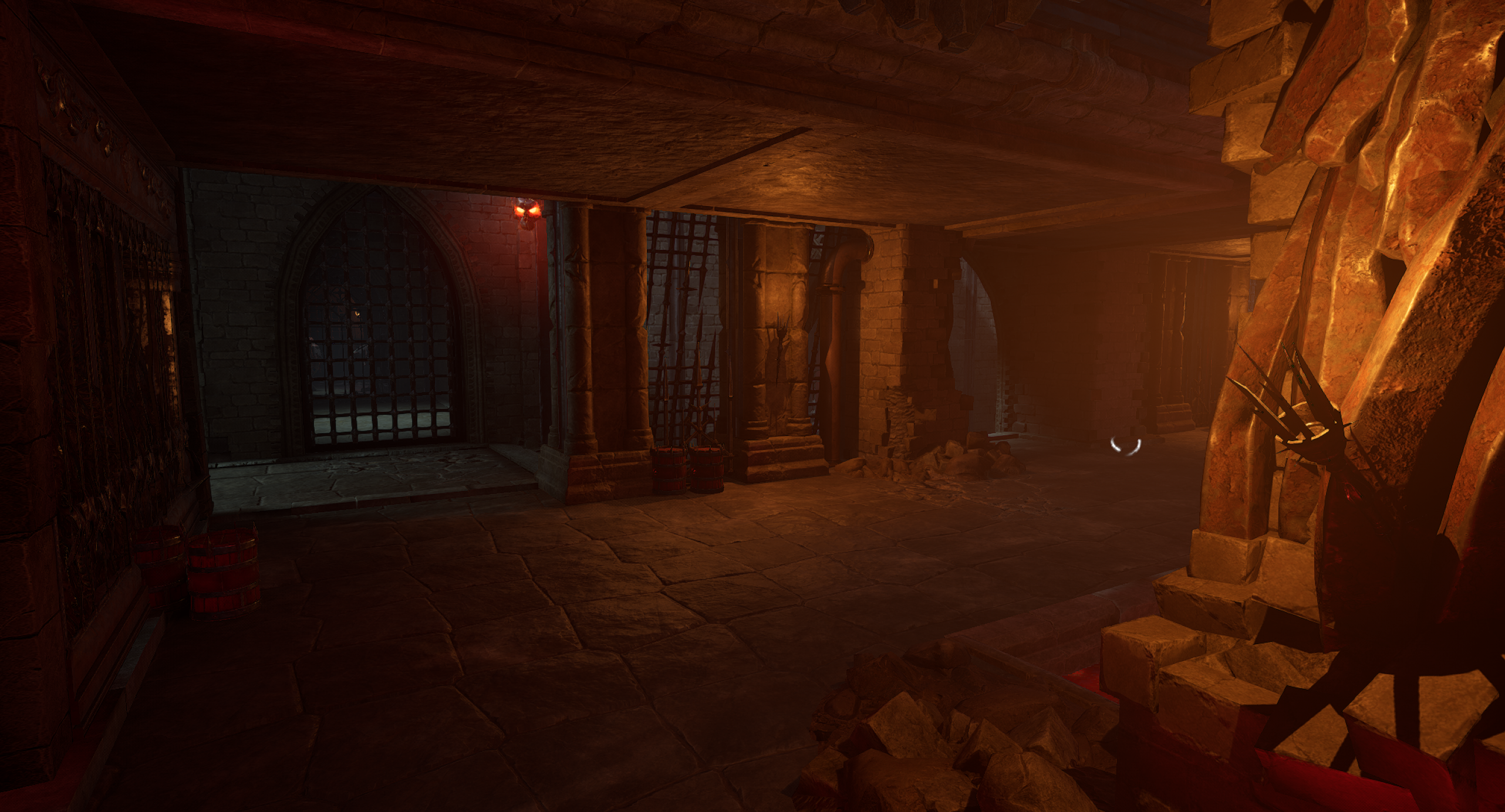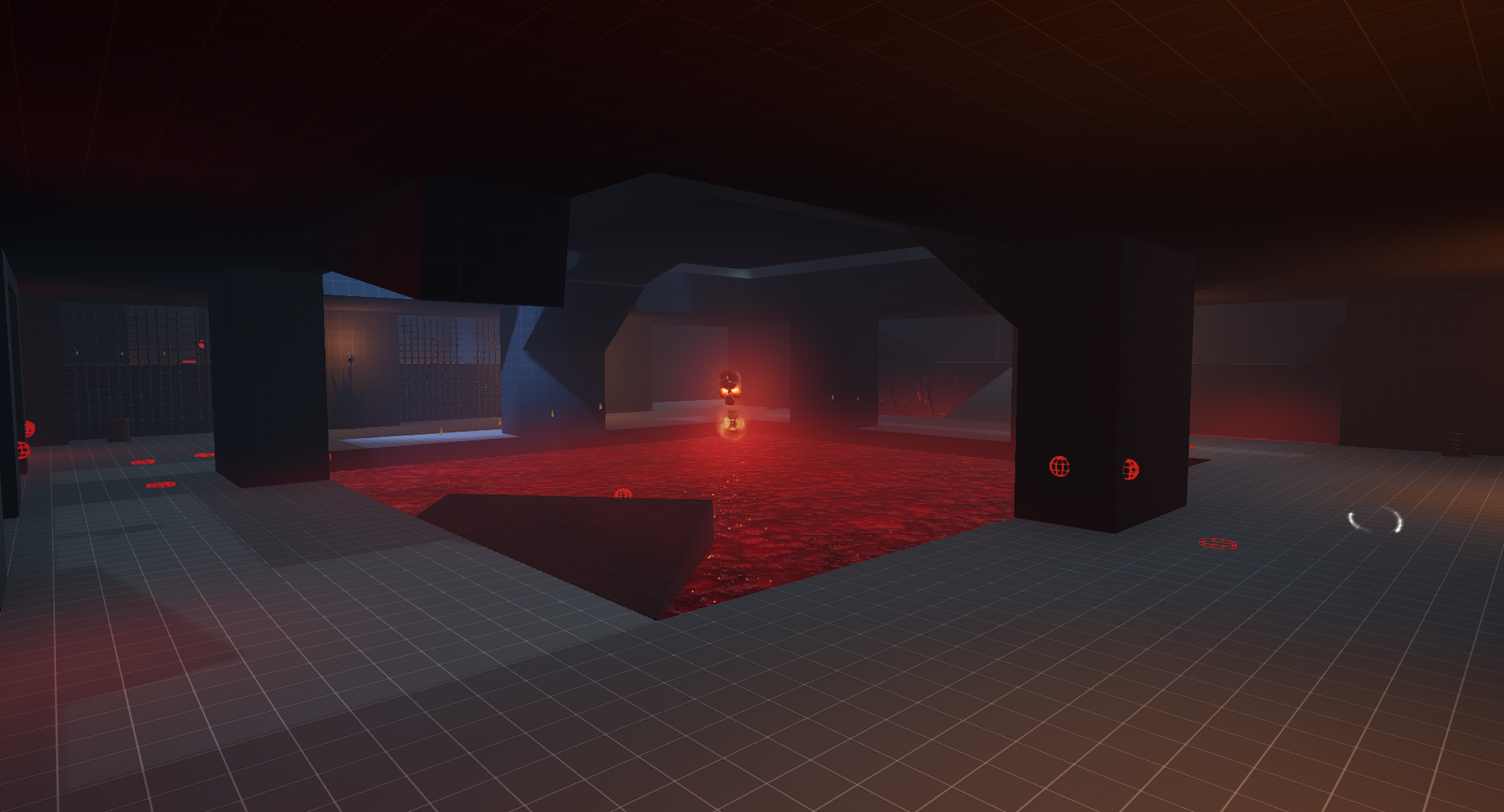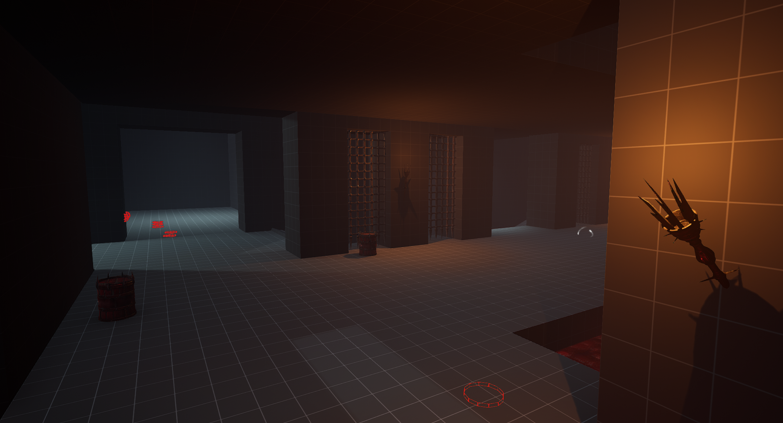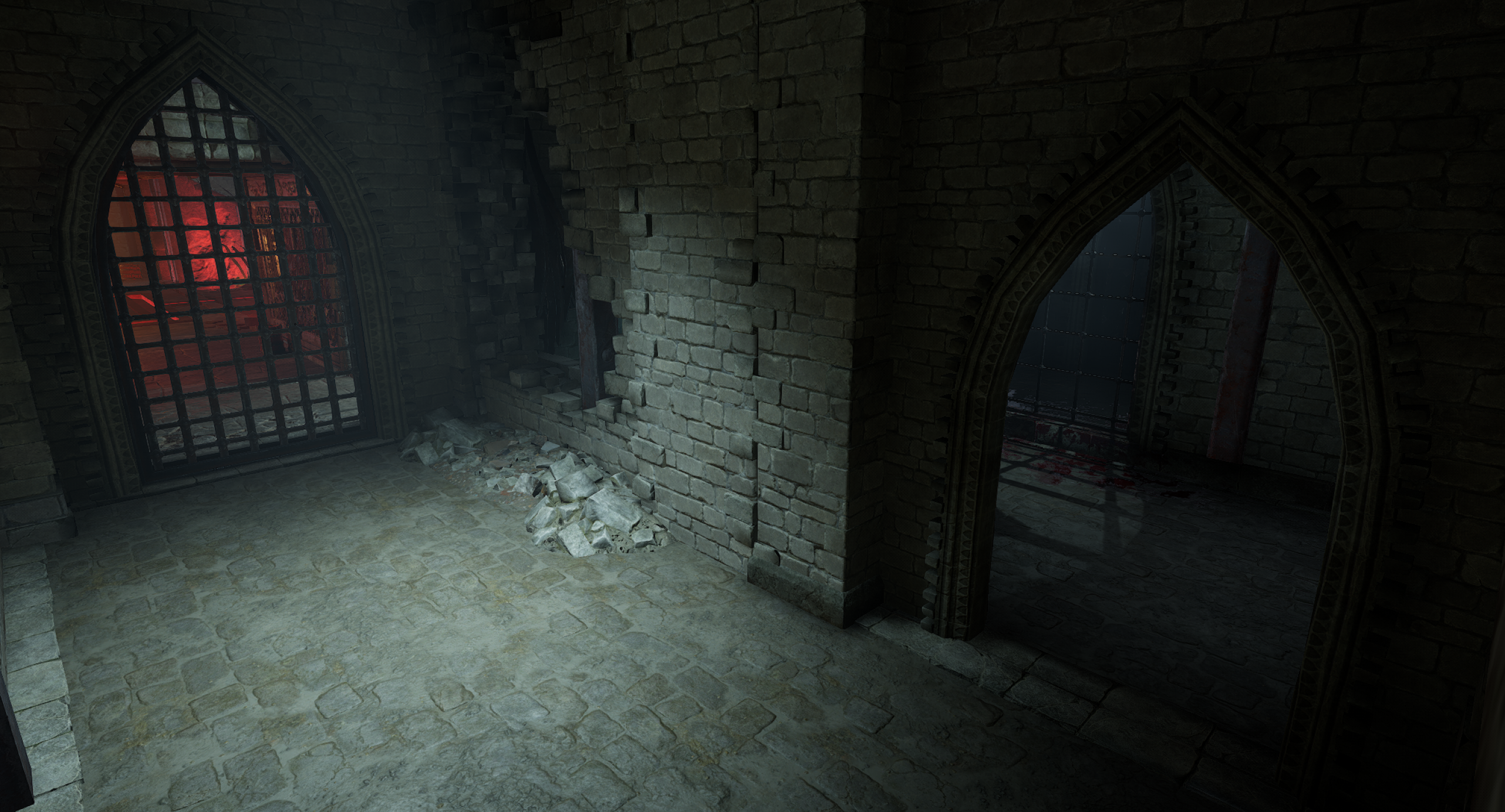 This is another arena loosely referencing the setting from the OG Painkiller — the Prison level. We wanted to capture a few key elements, such as the cell exit and the guard tower overlooking the arena. Our interpretation is a blood-soaked prison with a large blood pool in the center of the arena. As for the level’s overall form, I was heavily inspired by arenas from retro shooters like Quake. The arena features sharp angles and simple shapes. It includes side rooms that are accessible depending on the randomly selected objective for the arena. Environment art was done by Eryk Kossakowski.