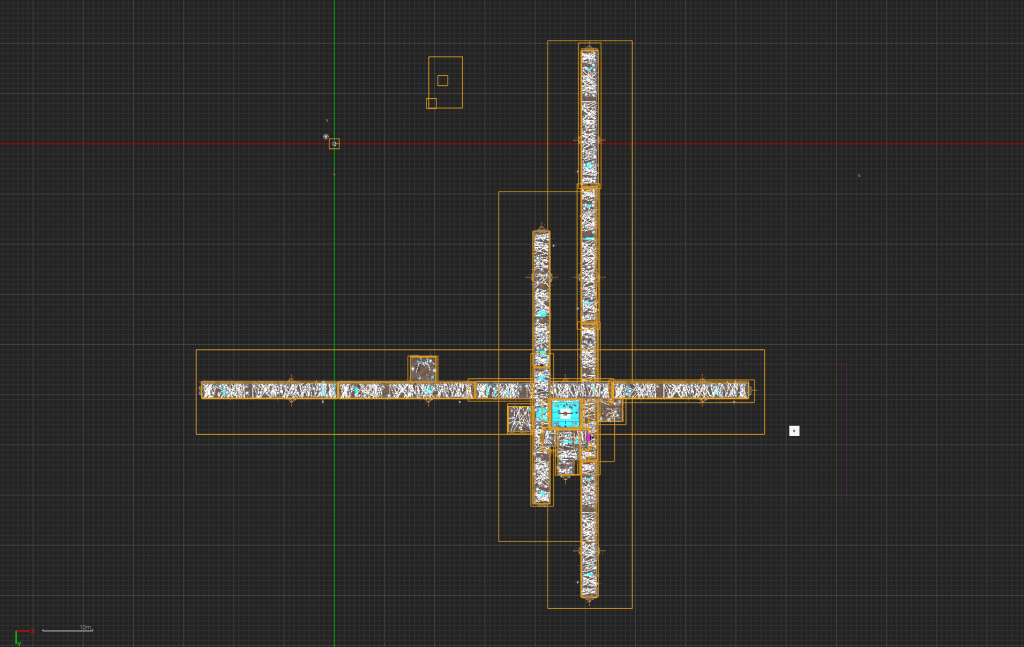 In the second section, the item room is moved to the second corridor—players are light-guided in that direction. Decals point toward the room.