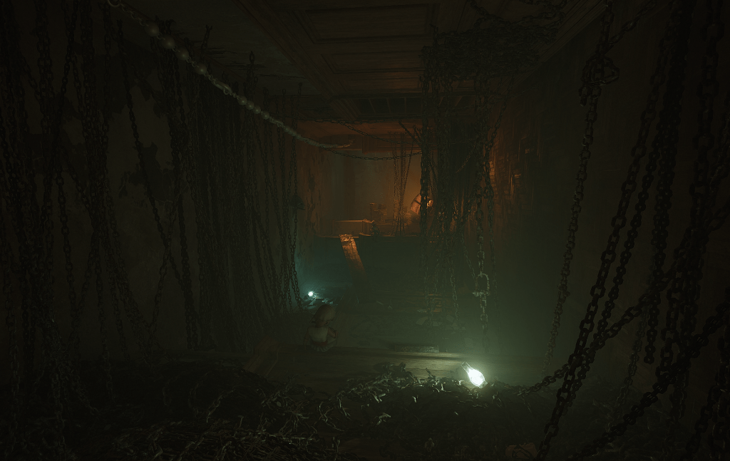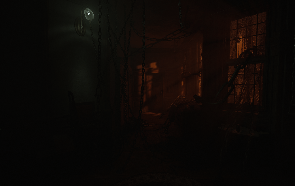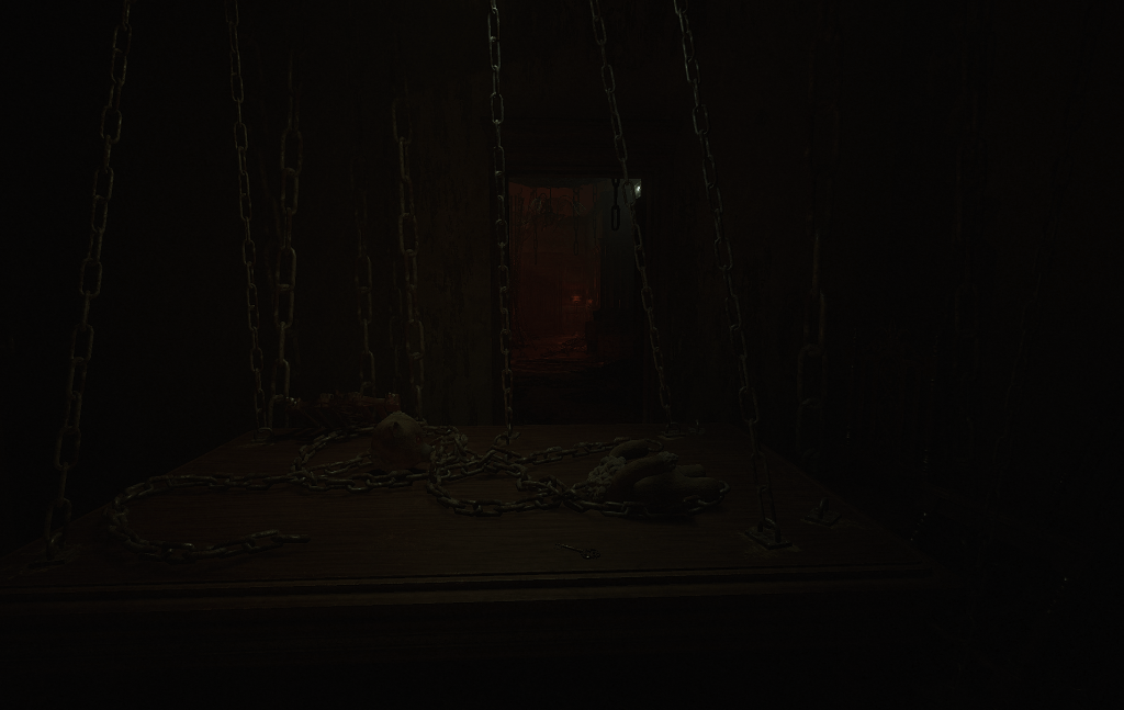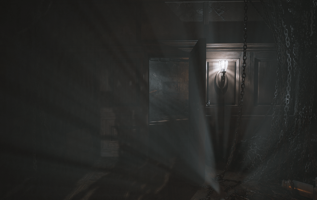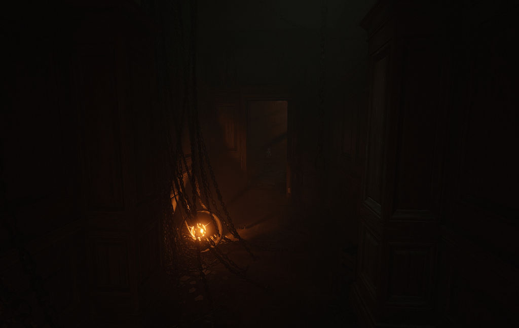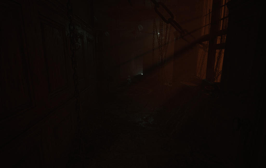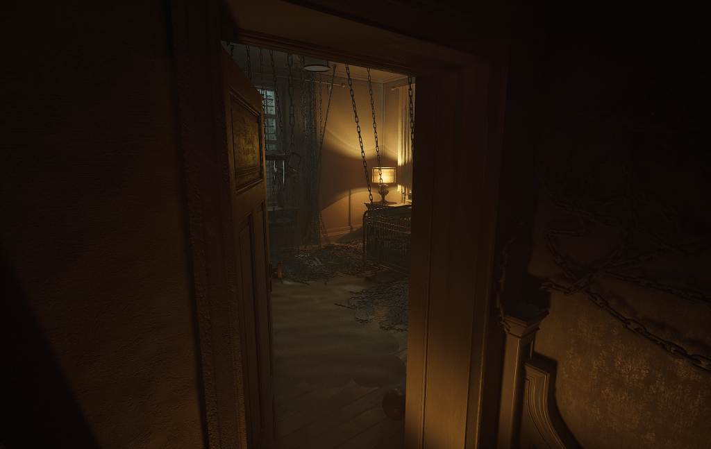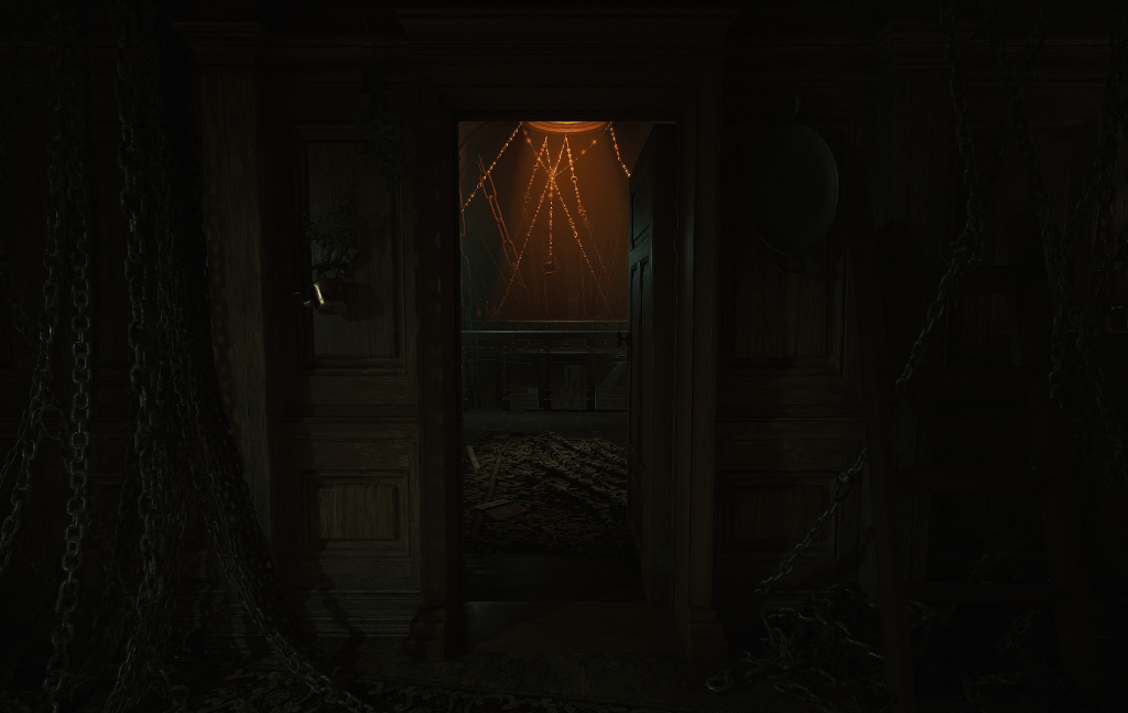 After exiting the closet, players see chains snapping, unlocking the path to the next sequence, which begins in a second closet – Players are guided by the light.