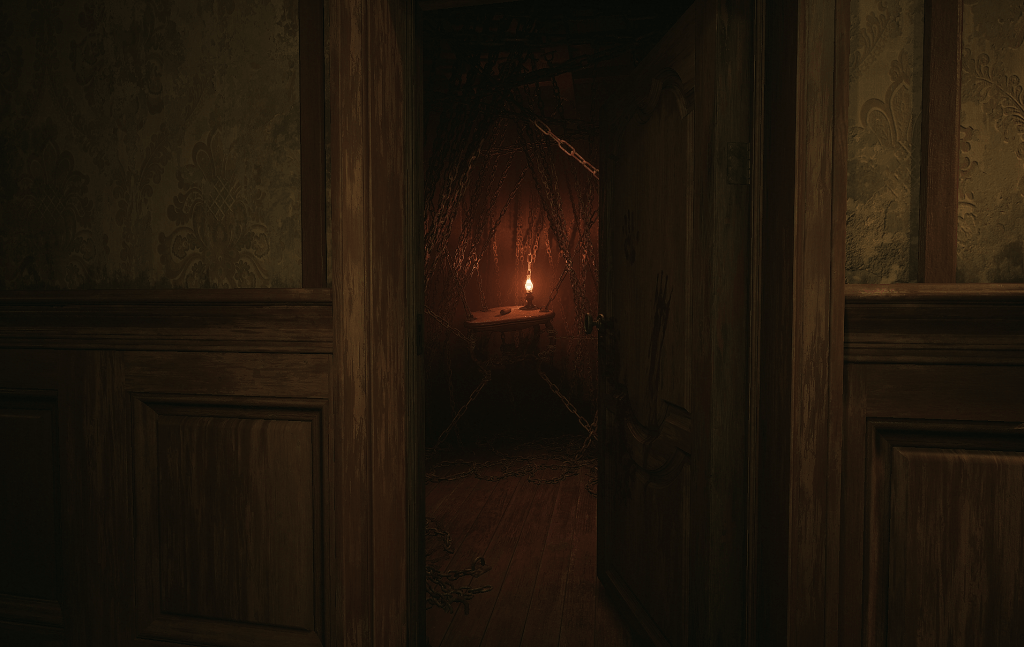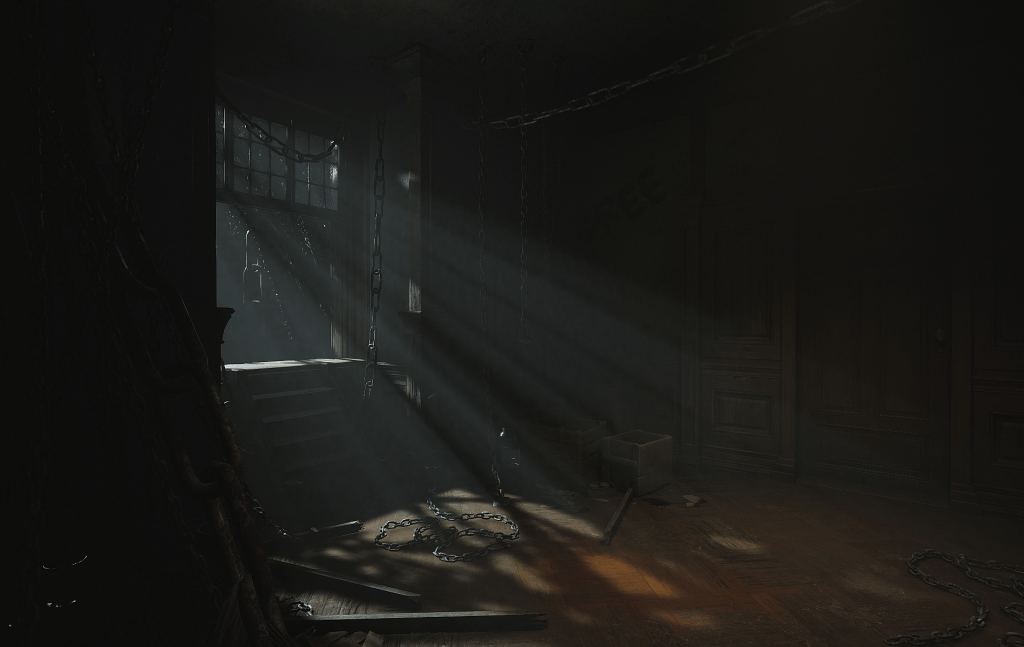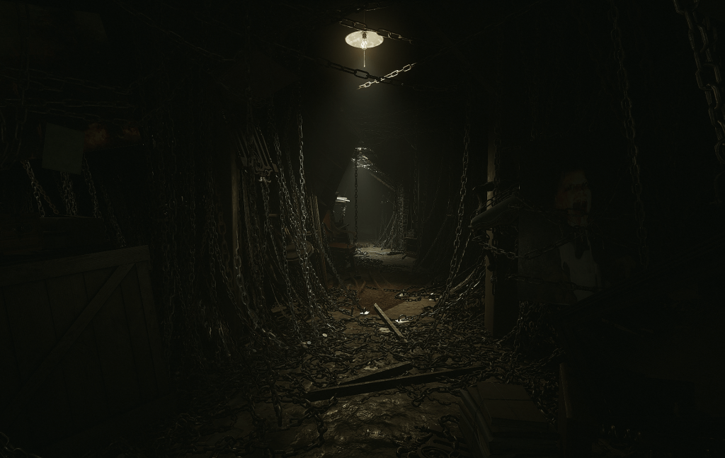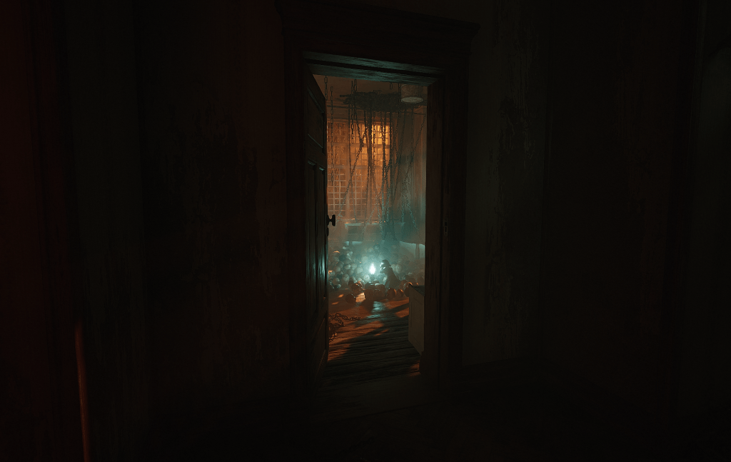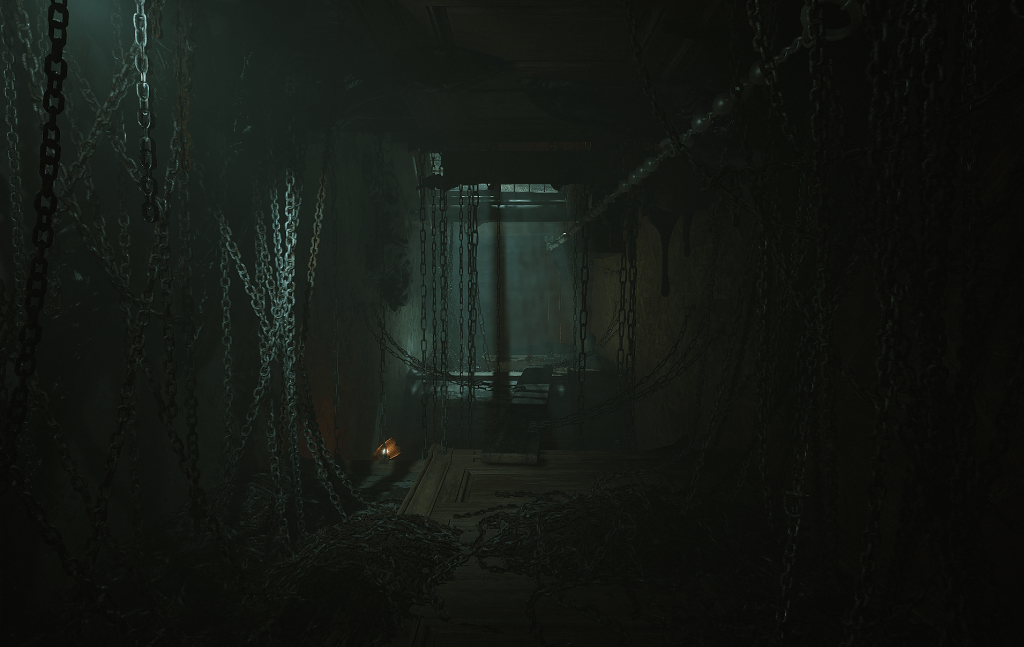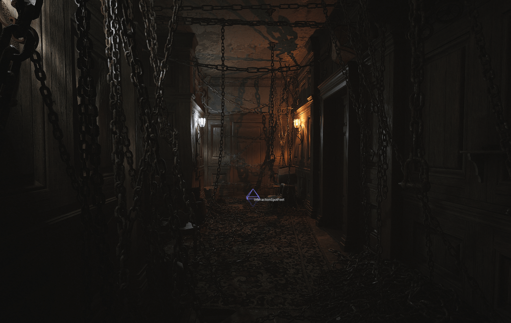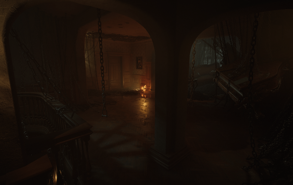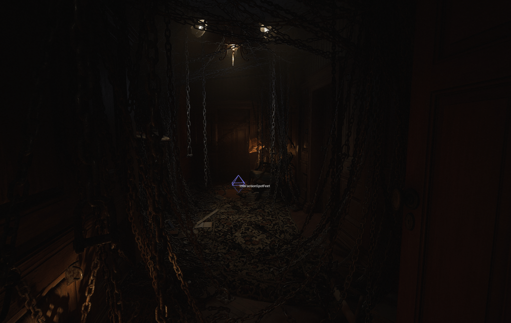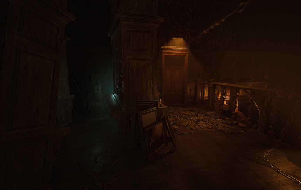 After exiting the closet, players see chains snapping, unlocking the path to the next sequence, which begins in a second closet – Players are guided by the light.