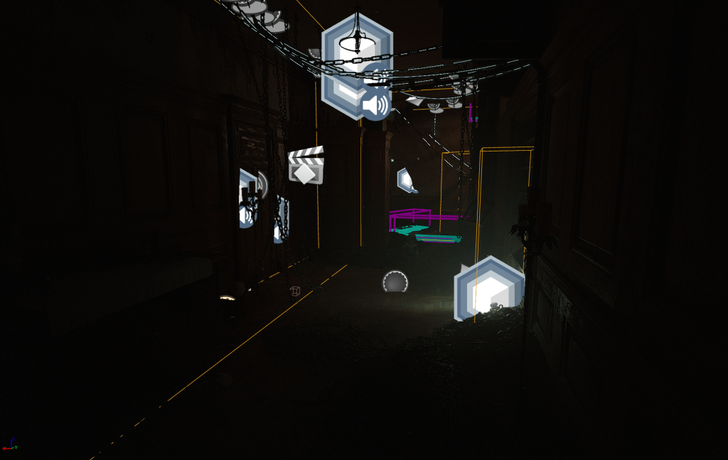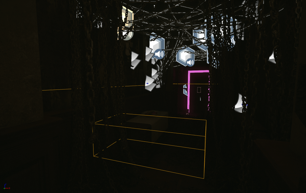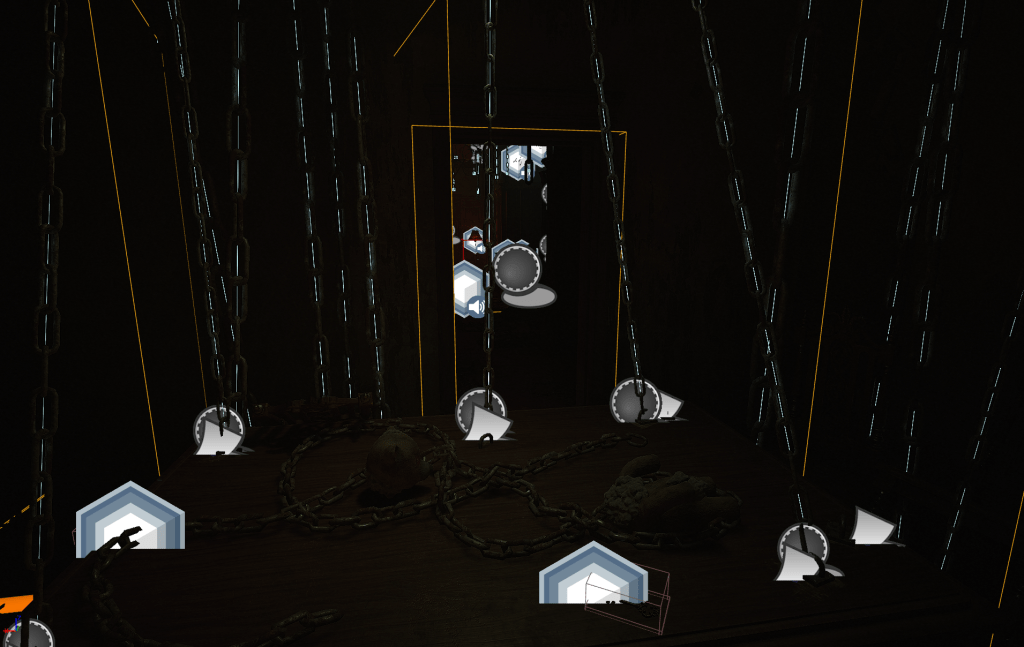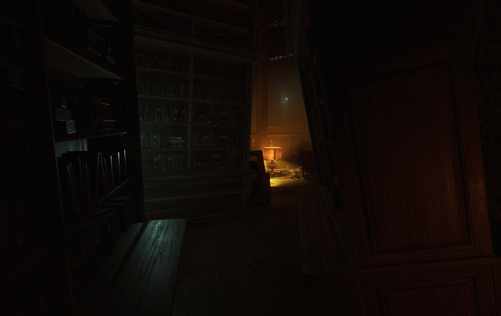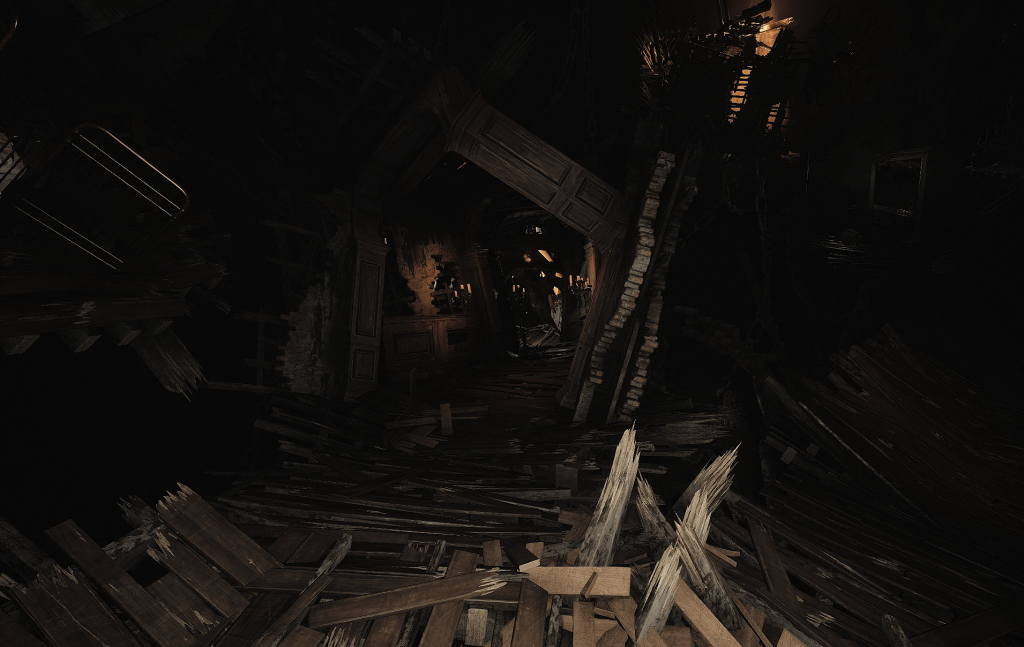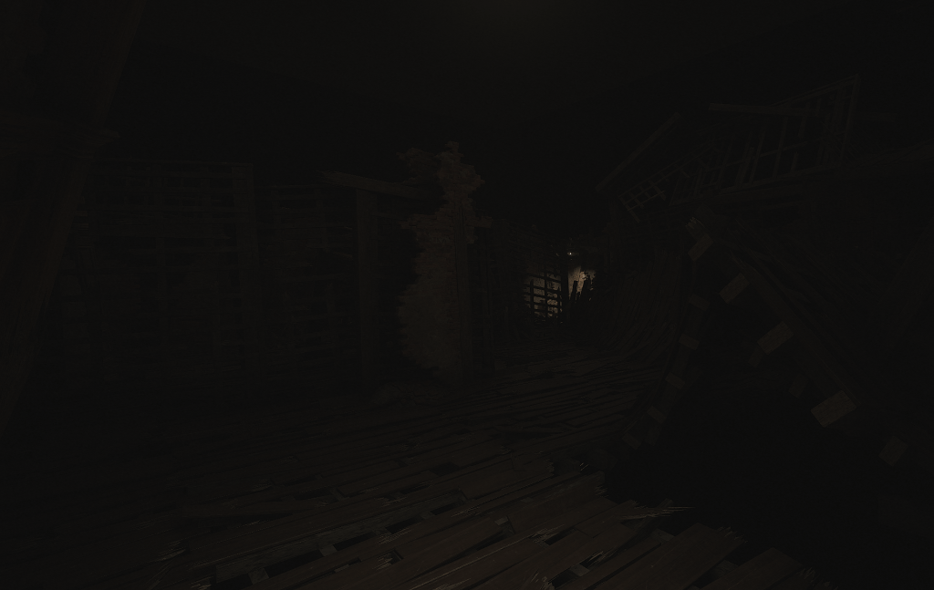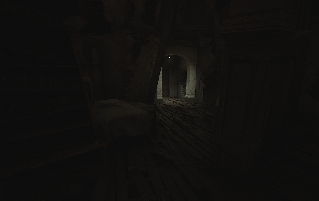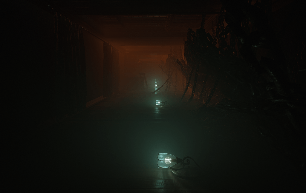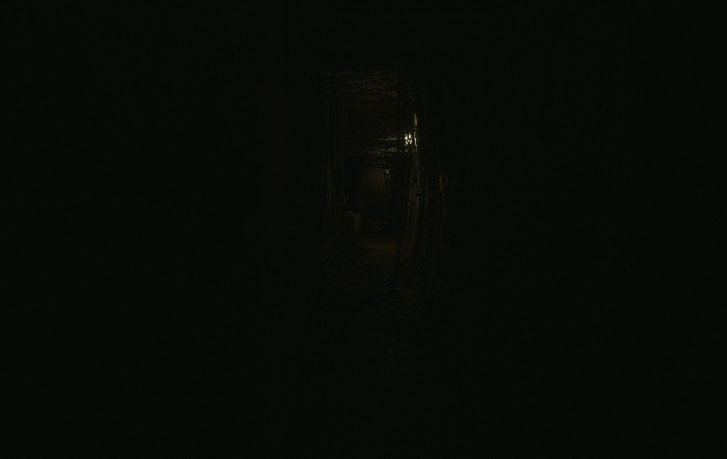 The space branches; players can choose any path, subtly guided by light. The darkness amplifies the fear in the room.