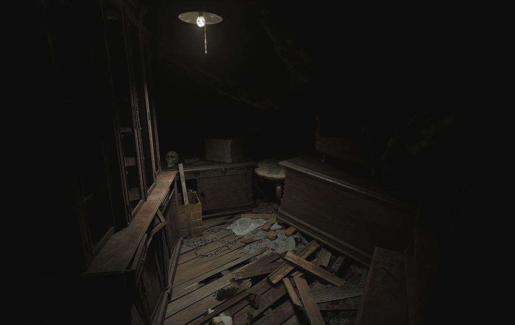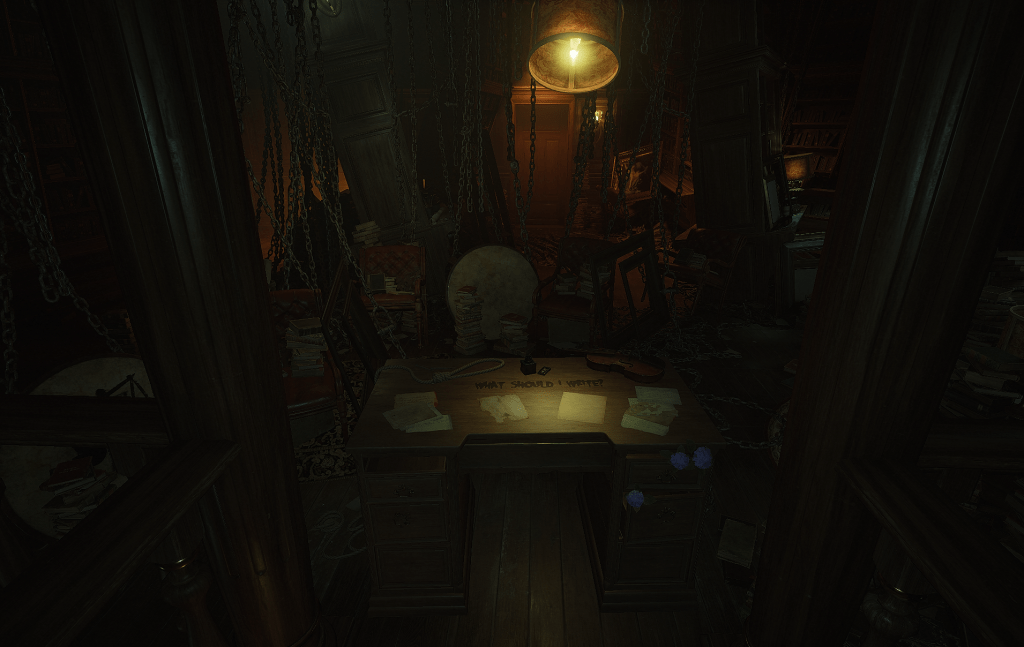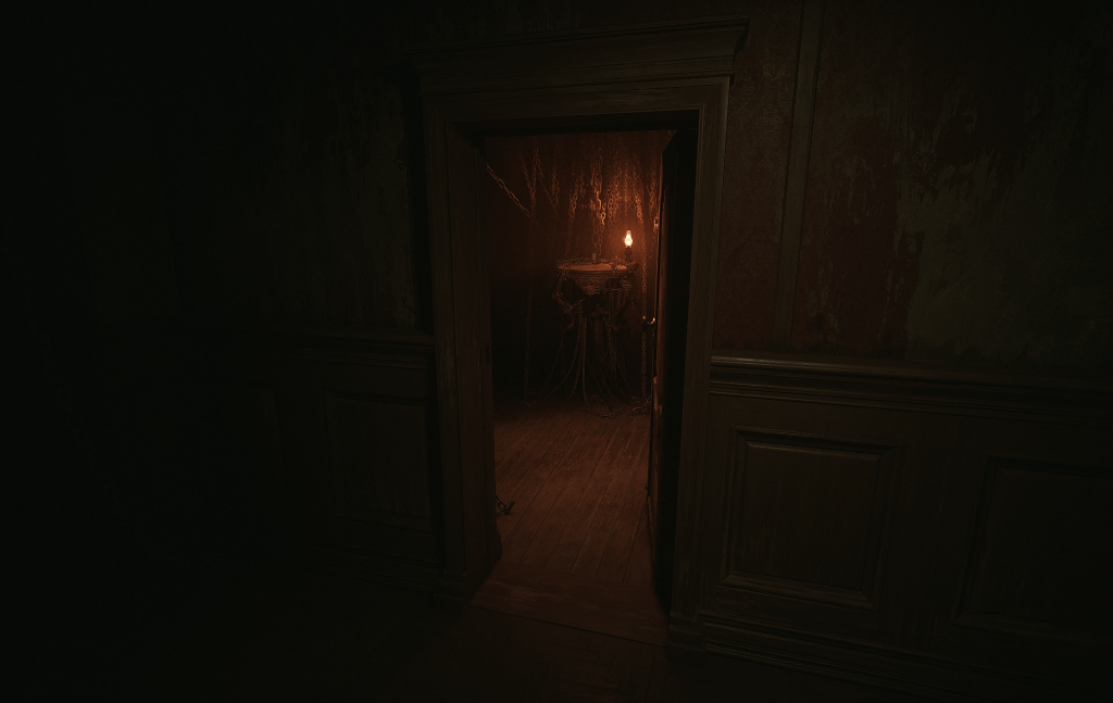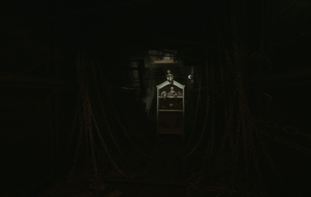 In the room, there are two light-sensitive objects – a doll and a pistol – one tied to family, the other to suicide. Players must decide which to destroy using the flashlight; destroying an object counts toward one of the game’s endings. This also introduces the motif and the mechanic for this sequence.
