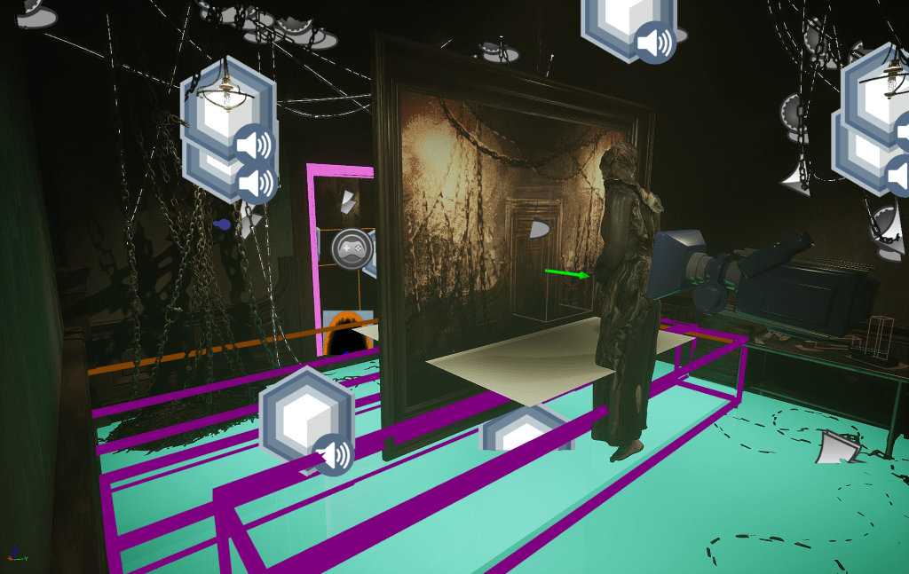 In the following room, a torn painting falls after interaction, revealing the Musician’s deformed face—suggesting how she sees herself and her inability to accept it. The walls in the room begin to close in.