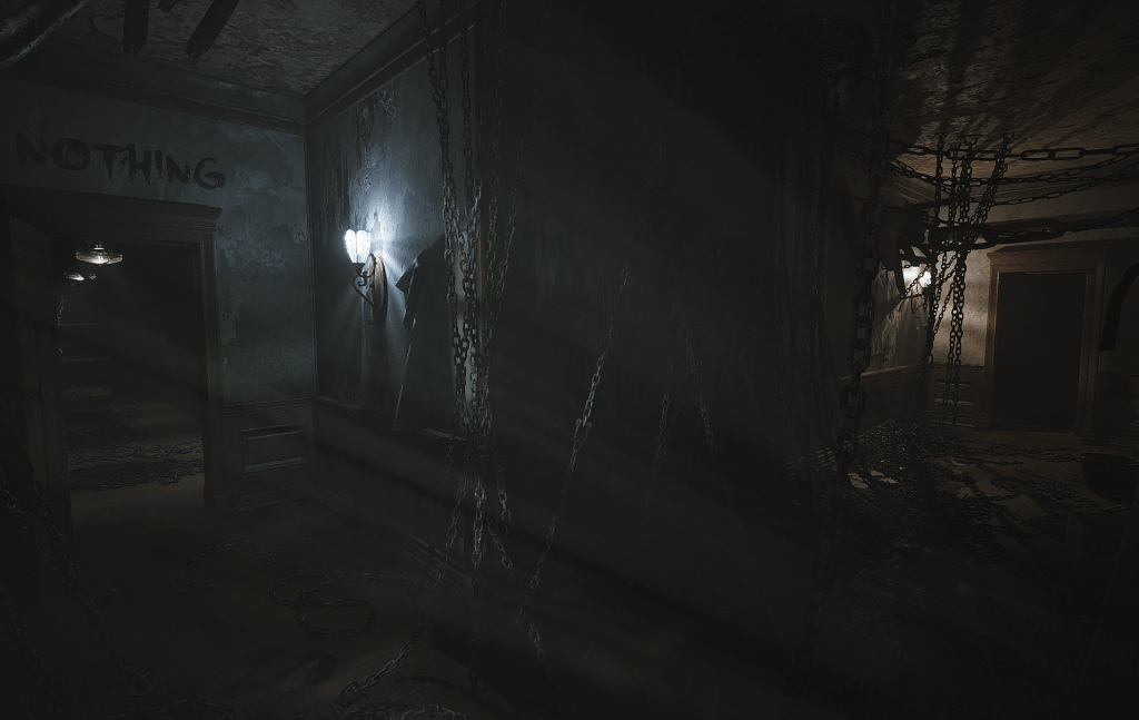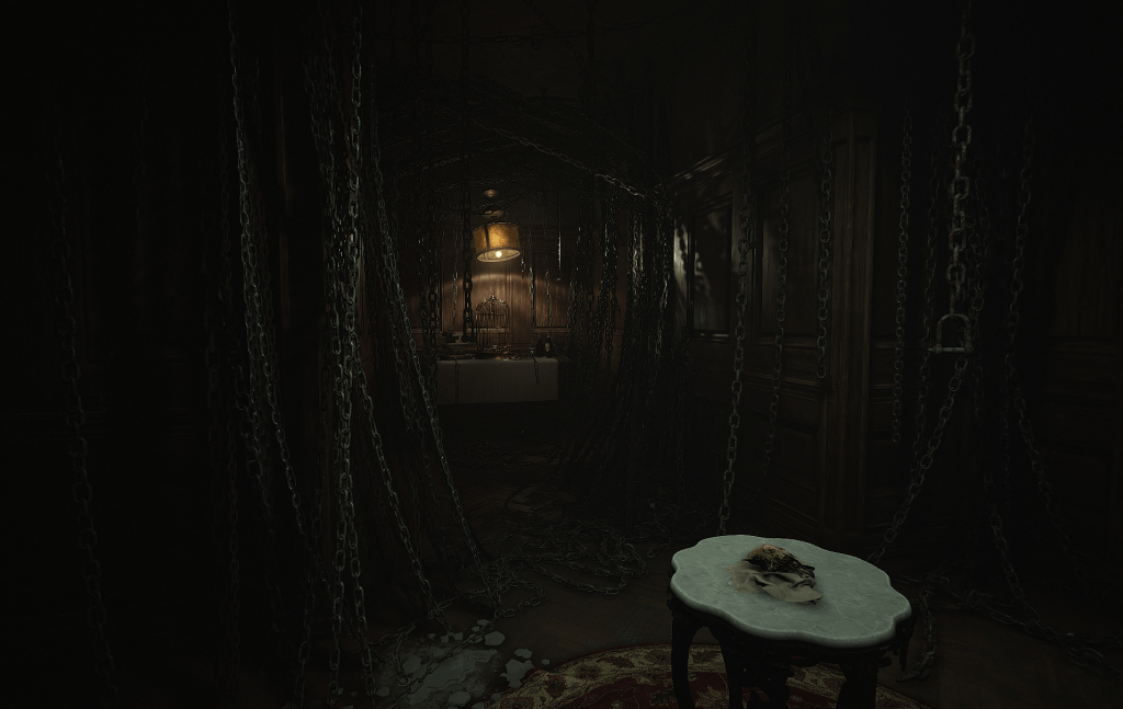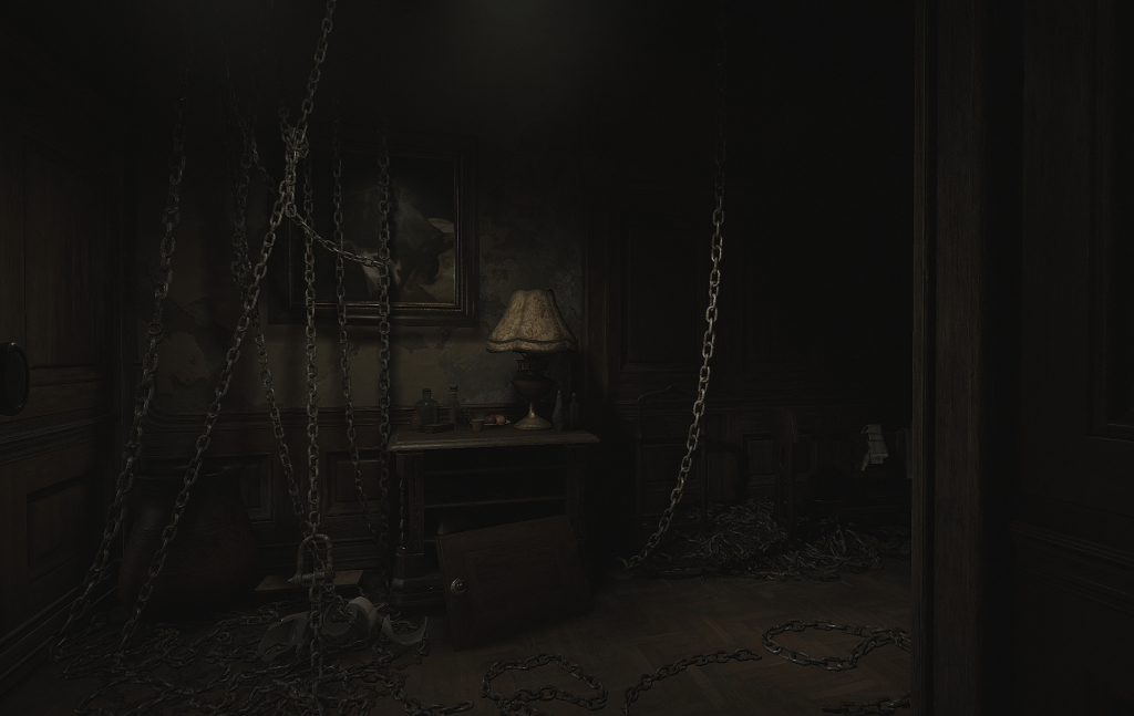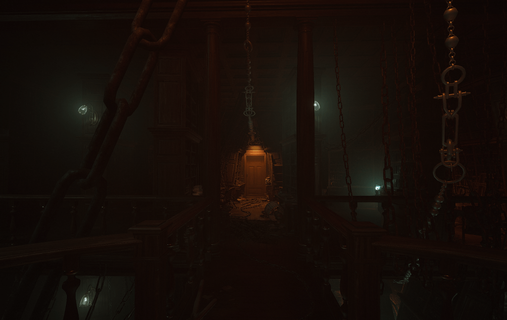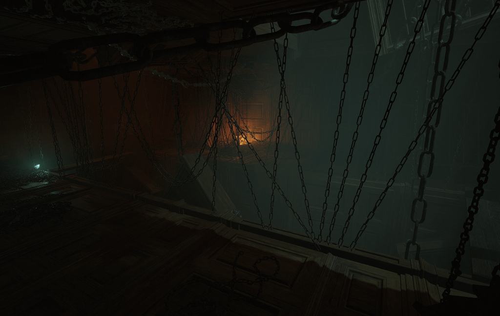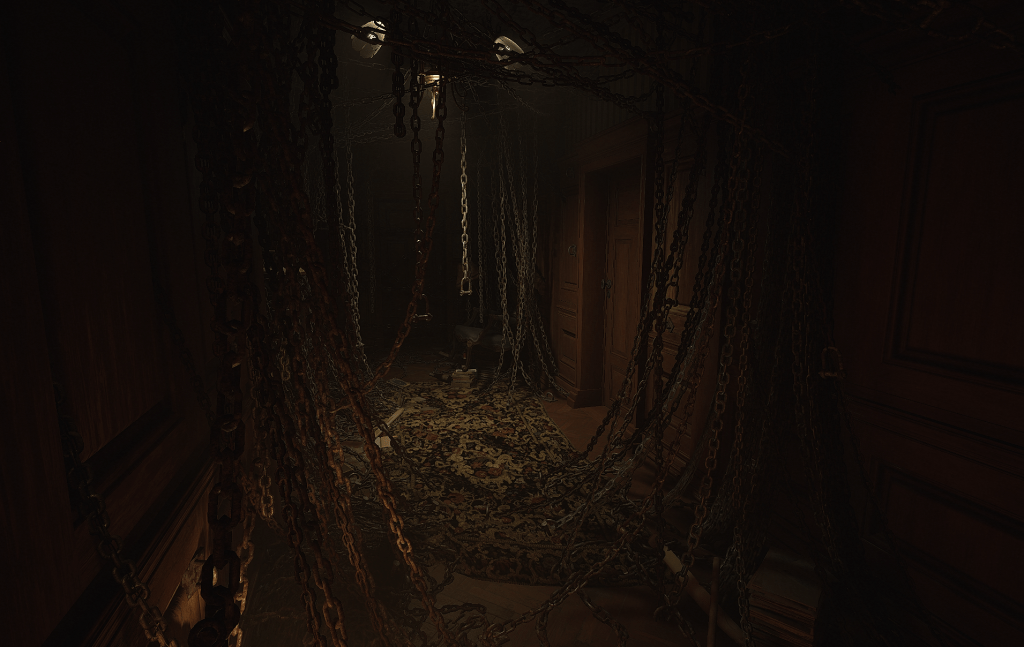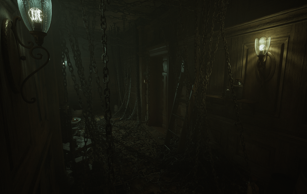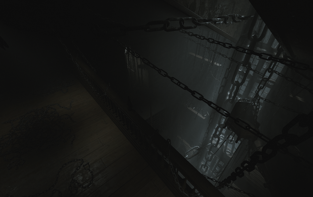 In the final Chapter, there are far fewer chains in the Mansion, signaling the protagonist’s mental “release.”