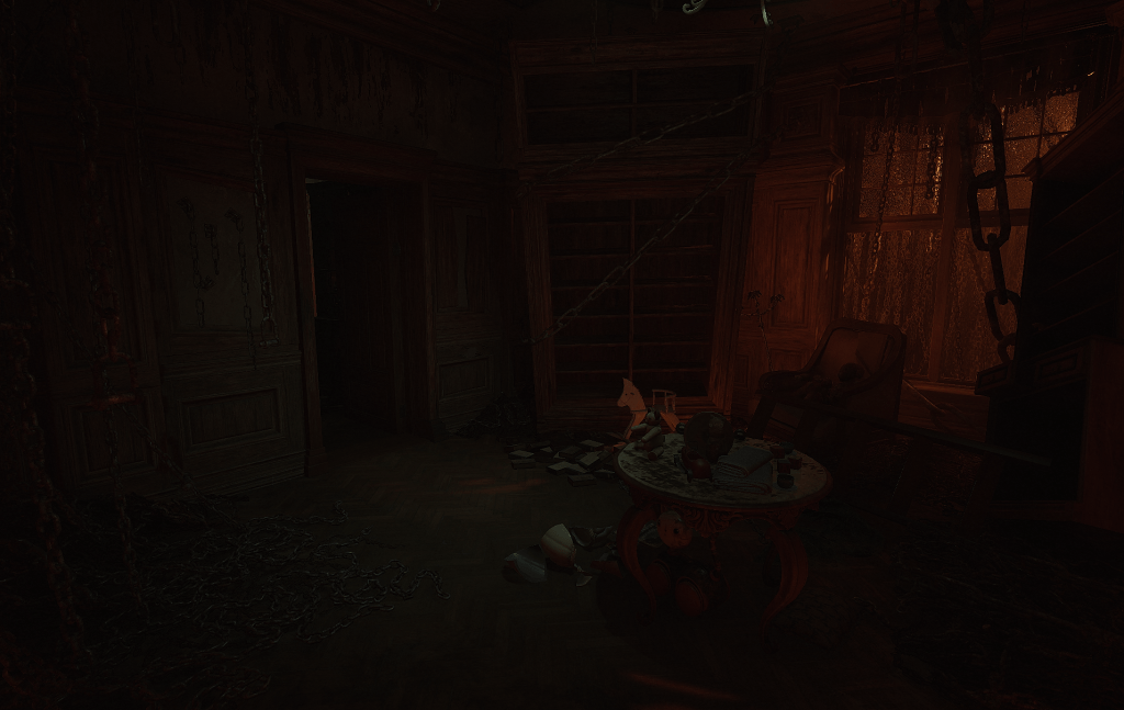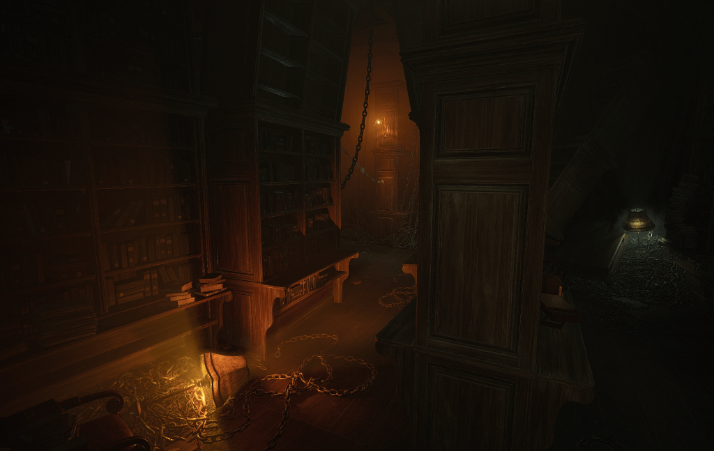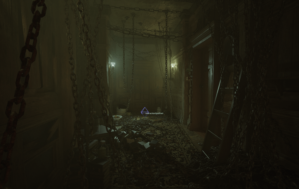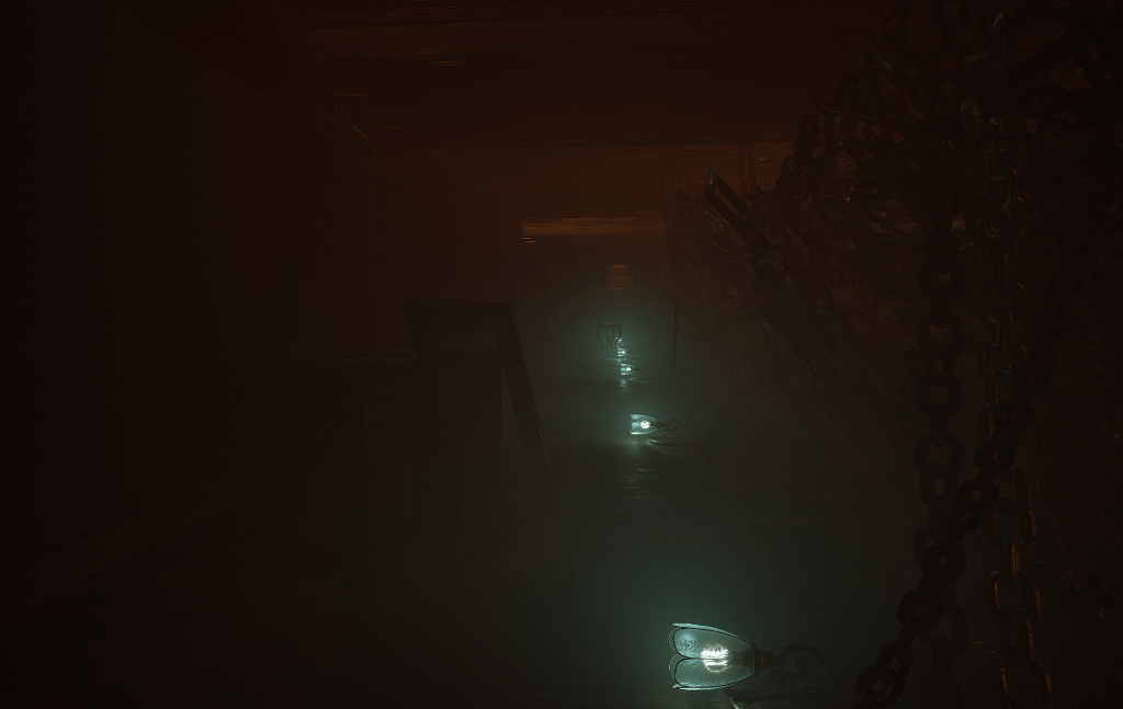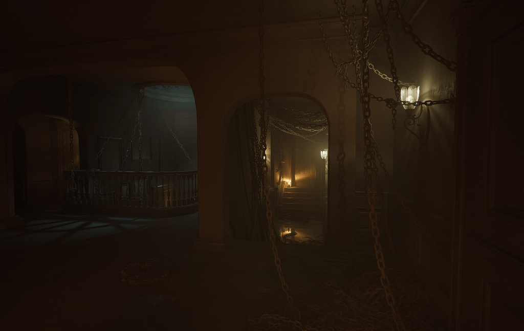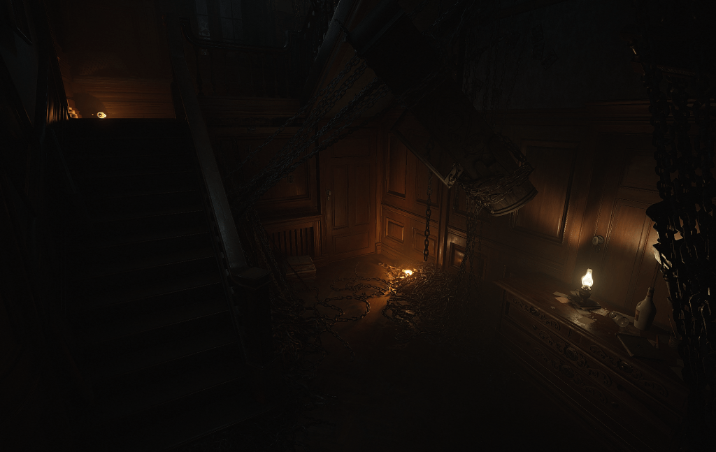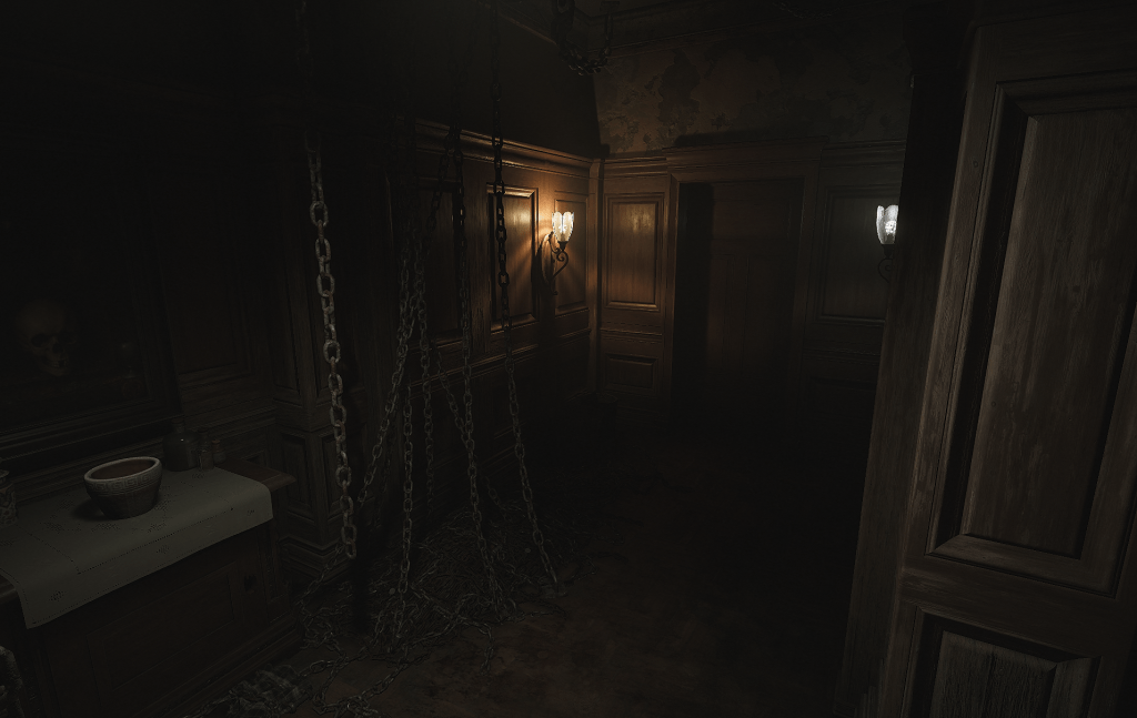 In the final Chapter, there are far fewer chains in the Mansion, signaling the protagonist’s mental “release.”