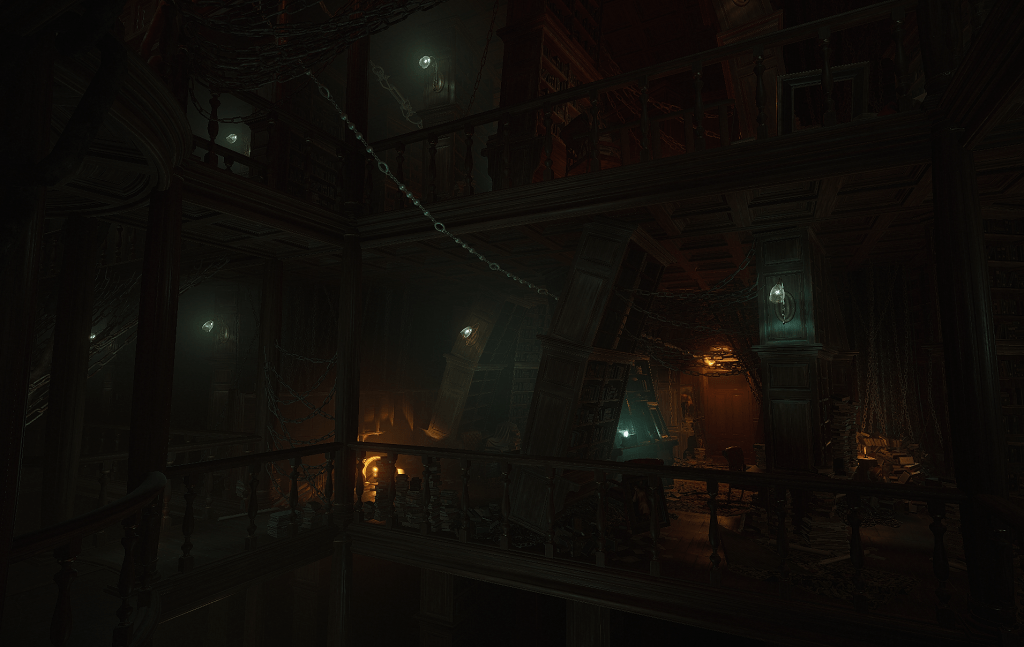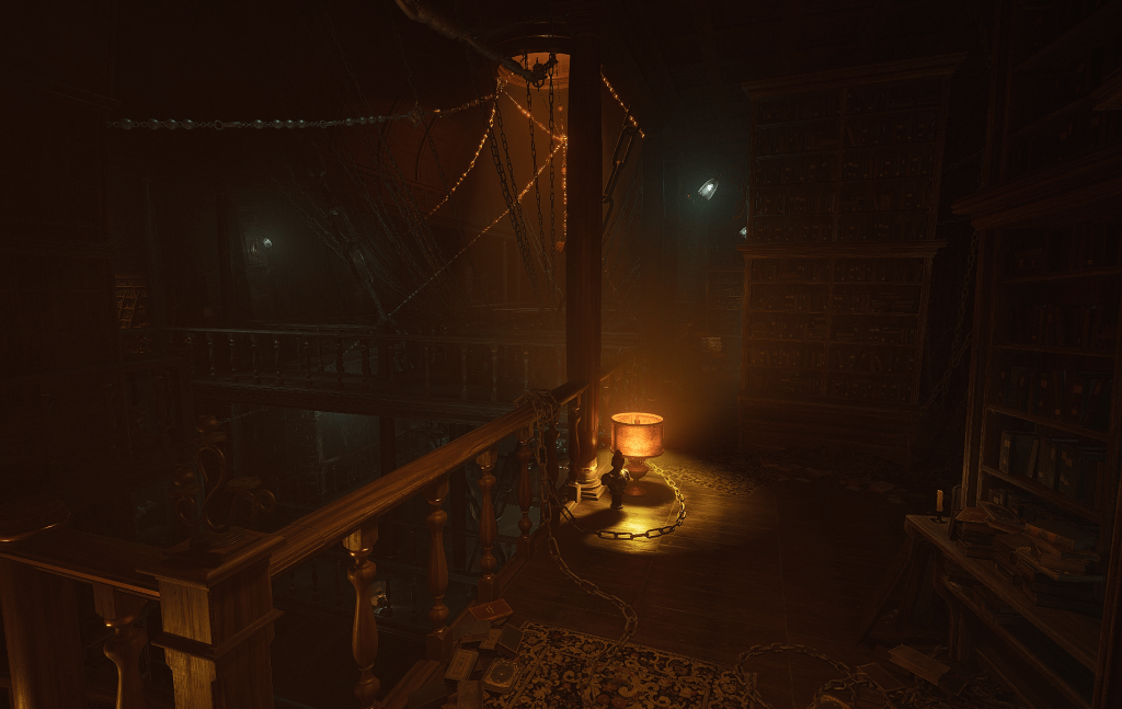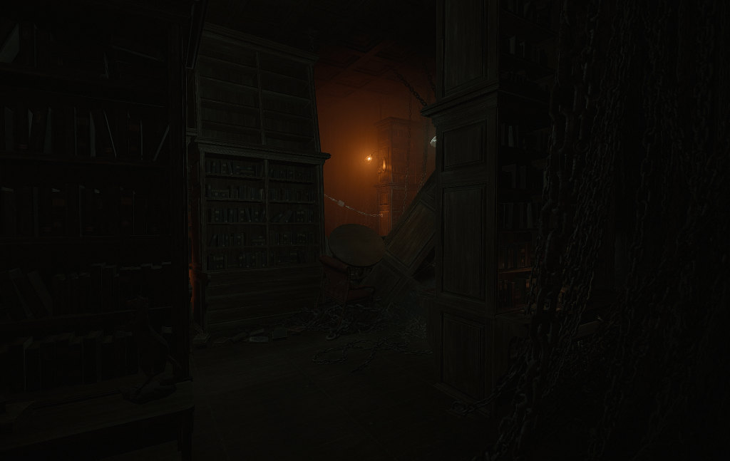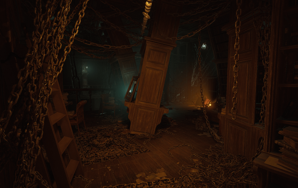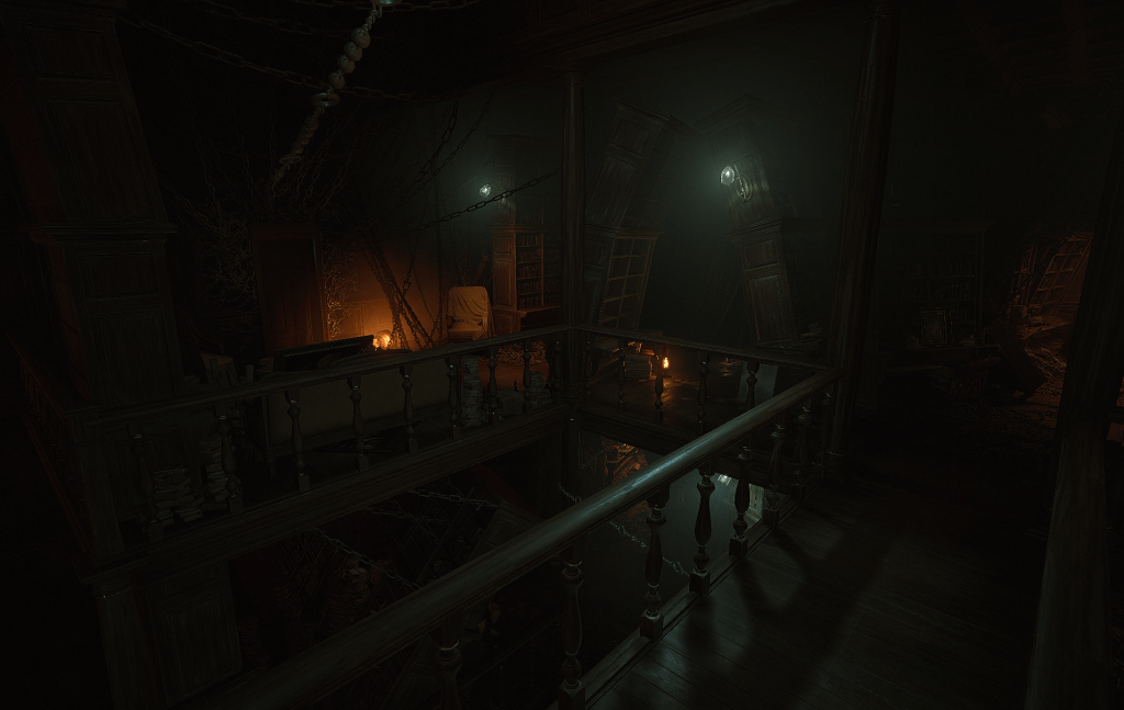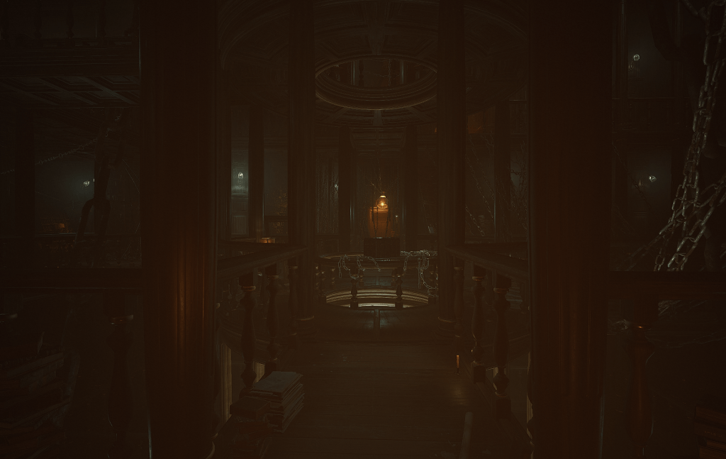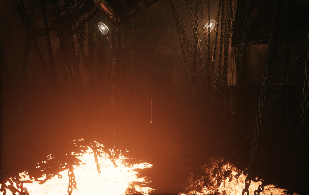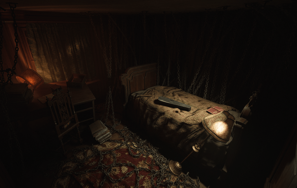 In the final Chapter, there are far fewer chains in the Mansion, signaling the protagonist’s mental “release.”