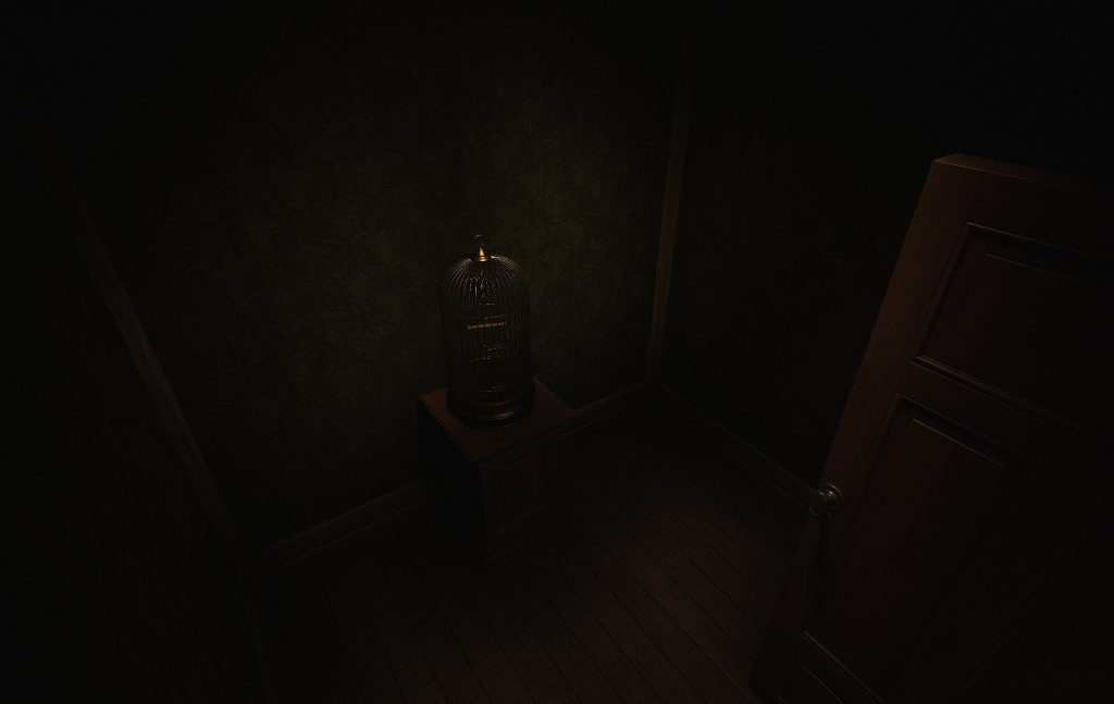 The first room is a tight space with an empty birdcage. Upon entering, the door closes and, when you turn around, the cage is gone and the walls begin to close in on the player, accompanied by the sound of a bird battering against cage walls—symbolizing the protagonist’s state and her sense of entrapment.
