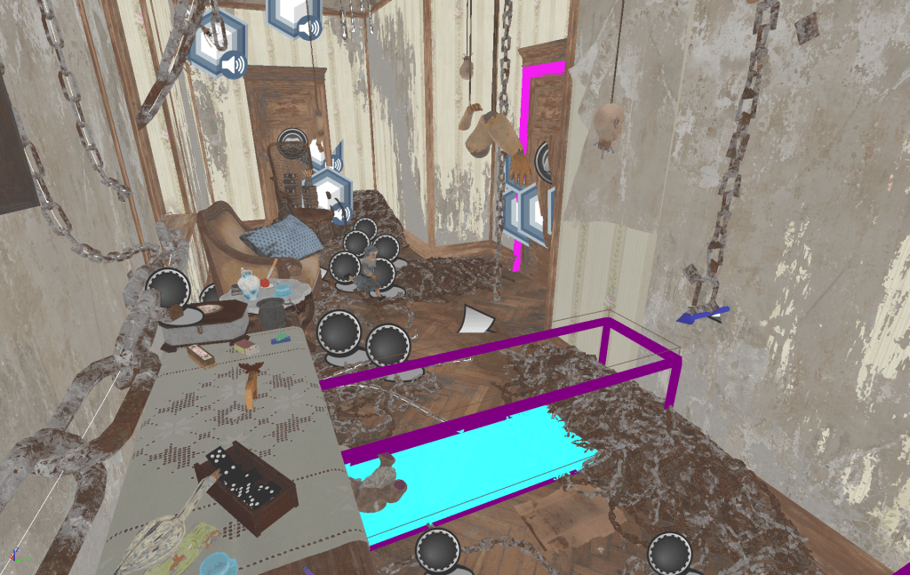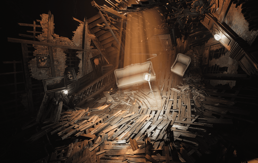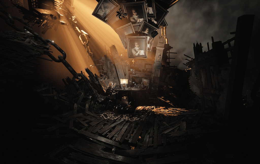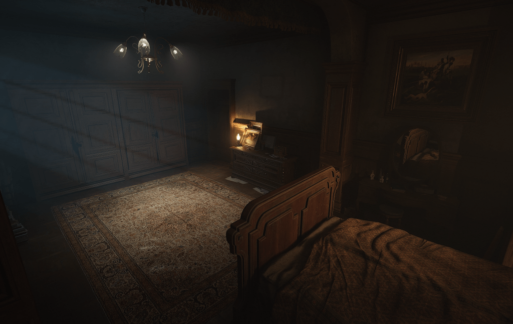 It starts in the Bedroom; upon exit, players are guided by light to a closet room with the Musician’s portrait. Entering triggers VO and a teleport into the first sequence.
