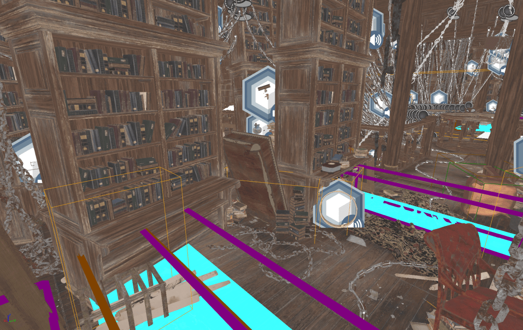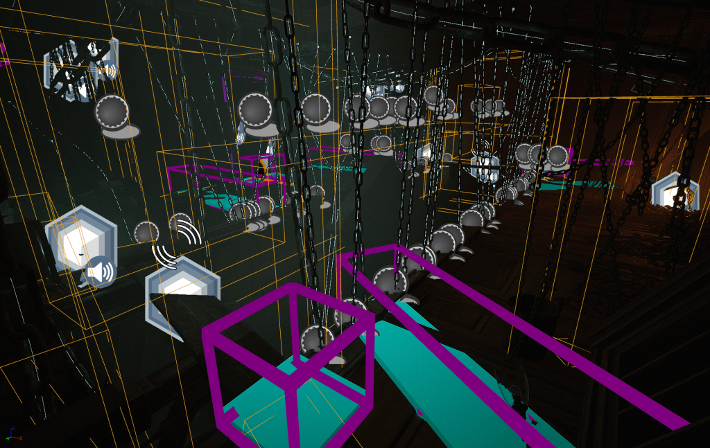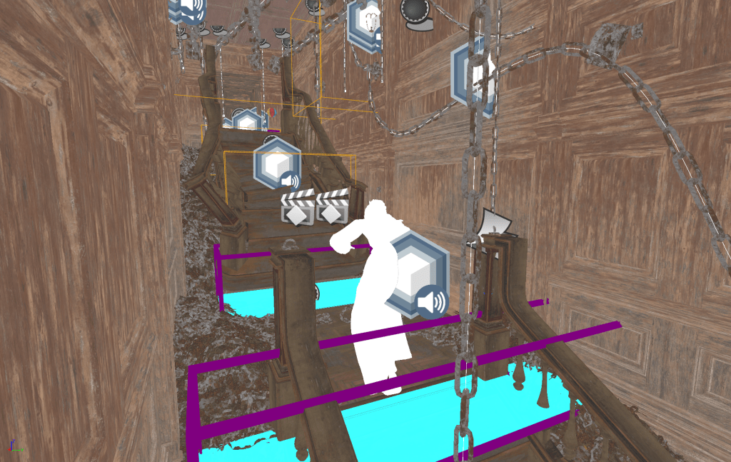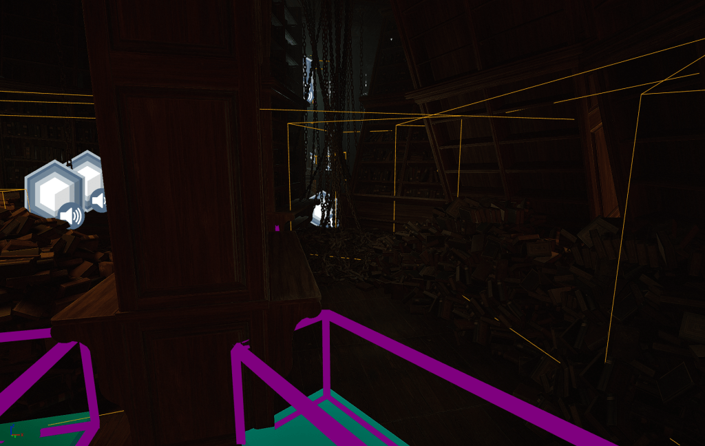 On The Last Note I had full ownership of the level design. The DLC’s script was written by Creative Director Damian Kocurek and then dressed in narrative by Marta Malinowska. My task was to translate that into space through room arrangement — reusing rooms from the base game and arranging them to present the story from the Musician’s perspective — plus blockouts for new locations, technical setup, scripting logic in the chapters, and scripting events, puzzles, and horror elements.