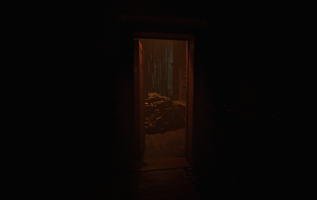 Upon exiting the Bedroom, now-unlocked The Office is immediately visible, leading to the largest room in the game.
